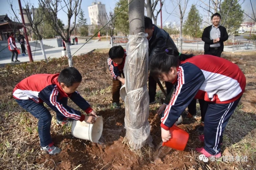 泰钢小学的师生们开展植树活动