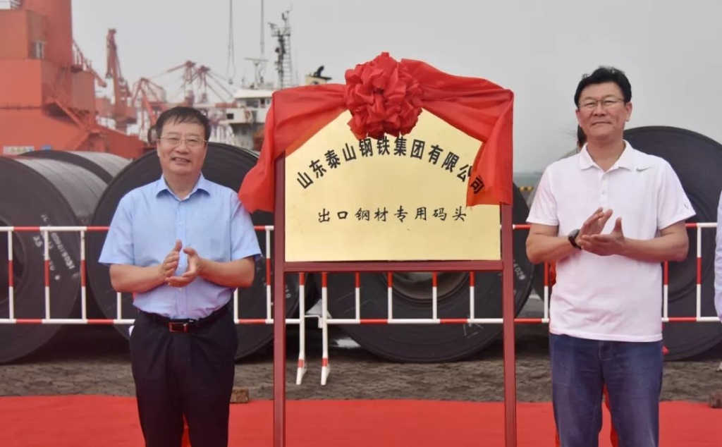 9月12日,泰山钢铁集团董事长、党委书记、总裁王永胜同志出席了泰山钢铁集团青岛港董家口出口钢材专用码头揭牌仪式,并与青岛港(集团)有限公司副总裁张江南共同揭牌。