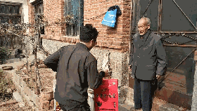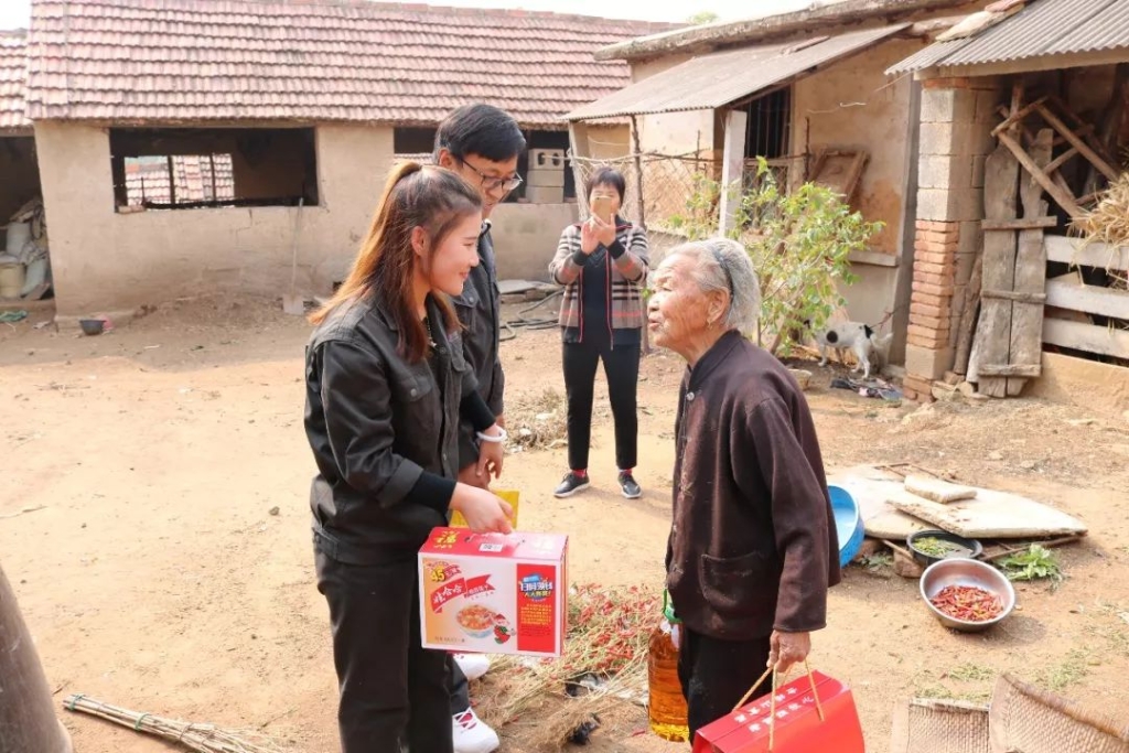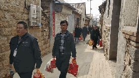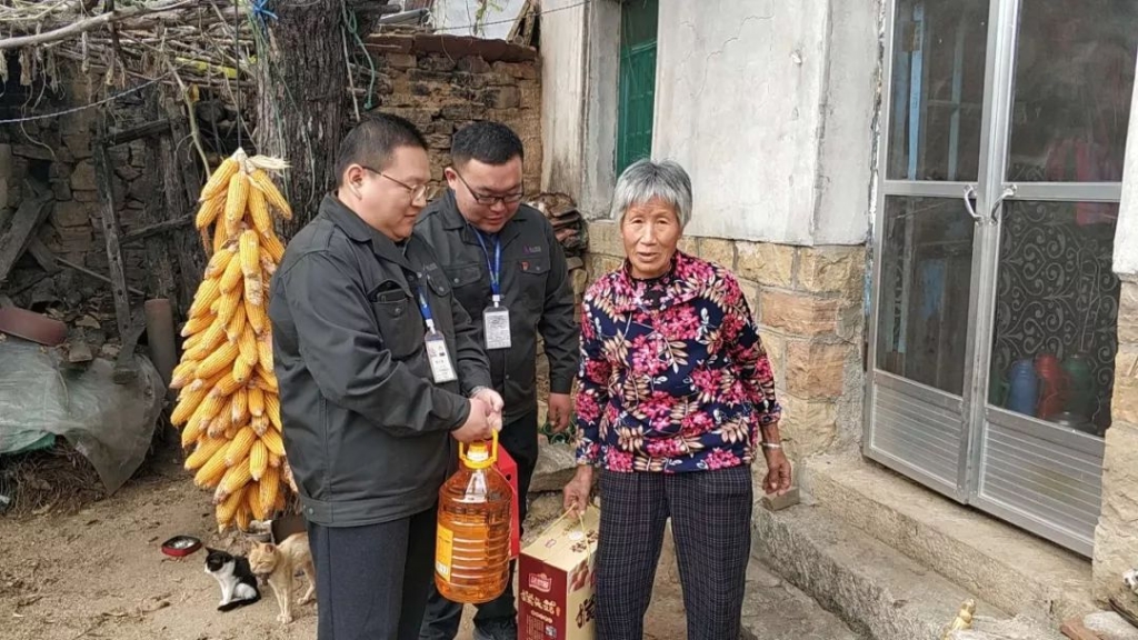 在重阳节到来之际,泰山钢铁集团青年文明号志愿者们在团委组织下,来到莱城区苗山镇王家庄村和五色崖村,看望部分生活困难老人,并为他们送去油、大米、鸡蛋等生活用品。