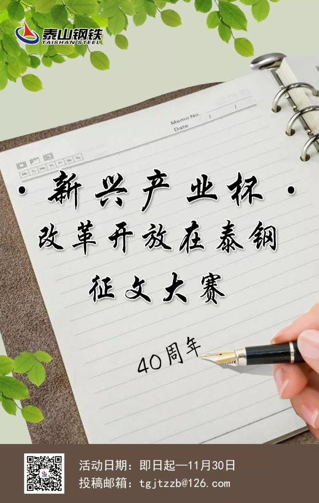 今年是改革开放40周年,为隆重纪念这一特殊而重要的历史发展节点,重温改革开放40周年巨大成就,集团公司党委在全公司范围内开展“与改革开放同成长,与幸福泰钢共奋进”纪念改革开放四十周年系列主题活动。活动内容包括——