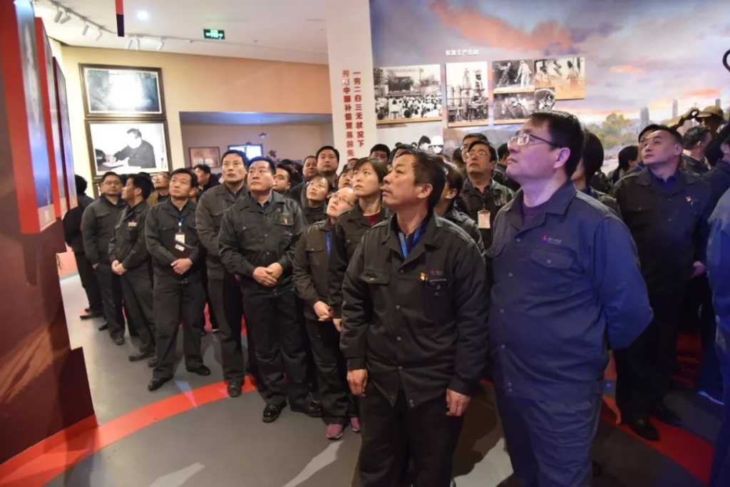 揭牌仪式结束后,王书记带领与会人员走进展馆,在老主席雕像前三鞠躬。参观过程中,王书记边走边看,同大家深情追忆老主席带领老一辈泰钢人探寻发展道路时的筚路蓝缕、艰辛奋斗。
