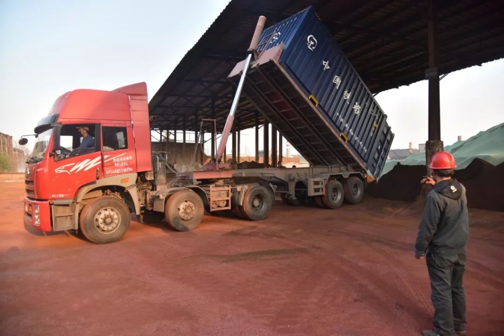 (乘坐集装箱而来的矿粉首次在泰山钢铁卸料)