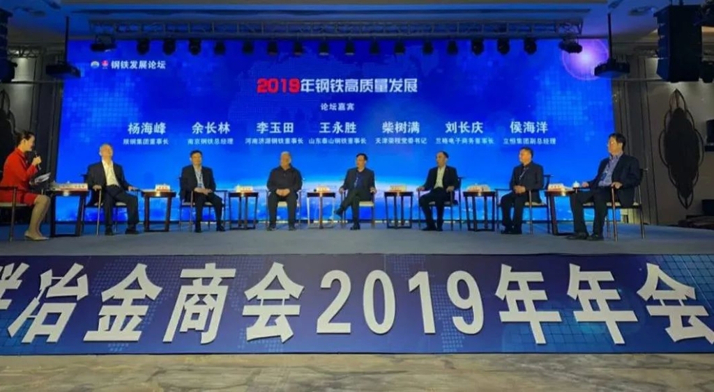 年会进入由全联冶金商会常务副秘书长王连忠主持的钢铁发展论坛的议程。新华社财经主持人方悦分别针对2019年钢铁行业发展趋势和2019年钢铁高质量发展两个主题提问,王永胜董事长说,过去我们讲“又快又好”“规模效益型”,是先速度后质量;现在我们讲“又好又快”“质量效益型”,就是先强调质量然后速度,所以高质量发展,既是国家经济转型的战略选择,又是企业发展的迫切需求,钢铁产业作为国民经济的基础产业,在高质量发展阶段必将大有可为。