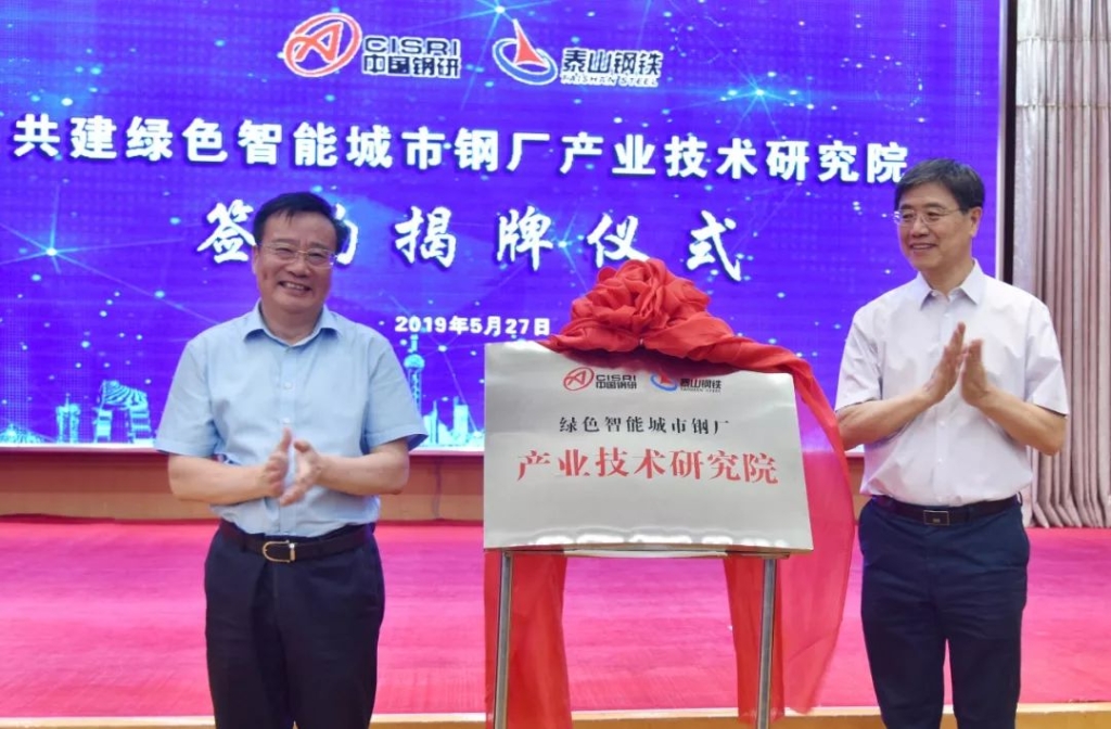 5月27日下午,王董事长又来到了莱芜宾馆的会场内。这一天,王董事长与钢铁研究总院院长田志凌共同为“绿色智能城市钢厂产业技术研究院”揭牌,揭开了泰山钢铁瞄准动能转换,实施绿色智能发展的新品牌,也开启了国家科研院所与实体企业技术融合、协同创新的有益尝试。