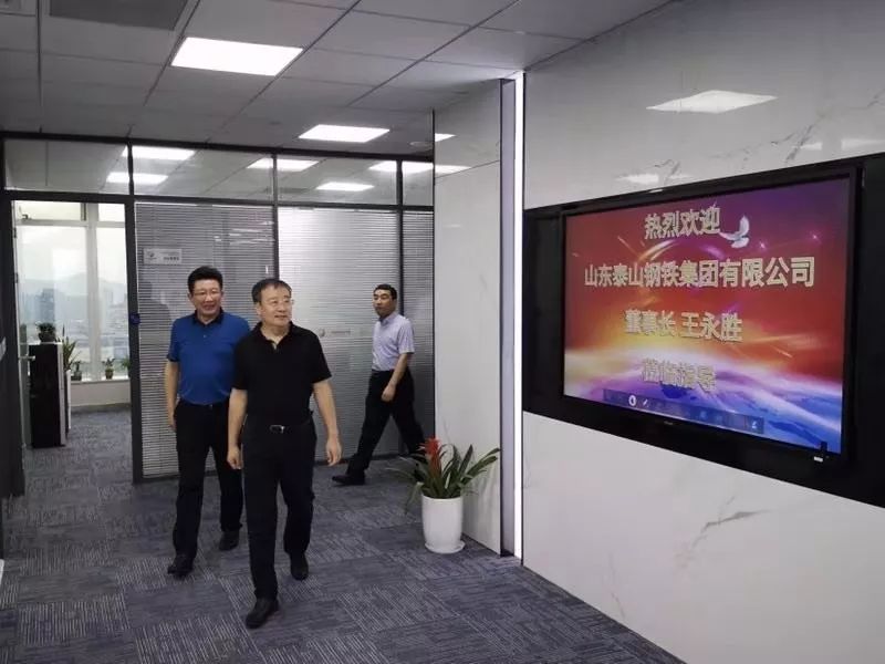 ▲王永胜董事长一行参观上海钢软智能制造板块的展示
