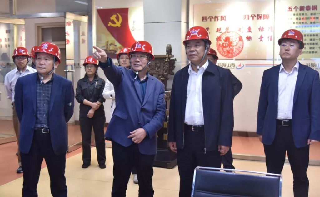 王董事长和靳磊局长在不锈钢轧钢生产现场