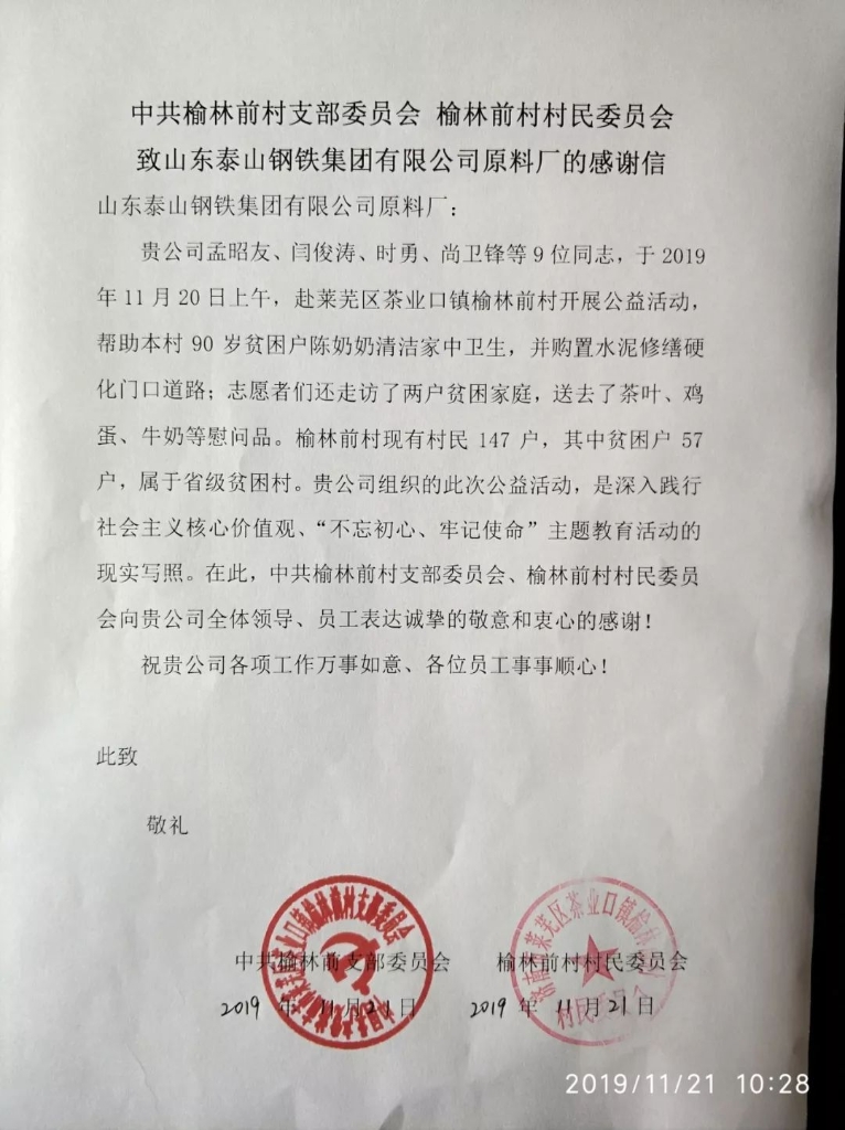11月20日,泰钢青年志愿者服务队组织9名爱心志愿者来到茶业口镇榆林前村开展了“爱老、敬老、助老”公益活动。