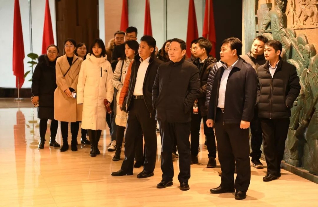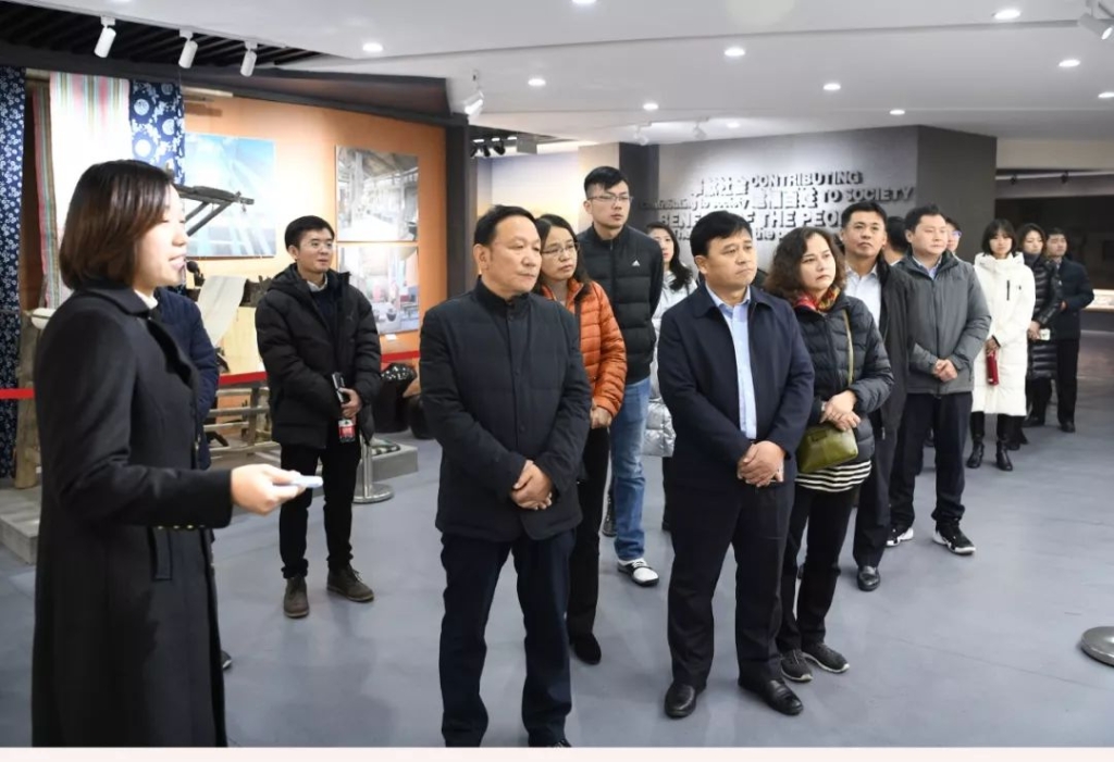 (青岛城投客人们参观泰钢精神主题展览馆)