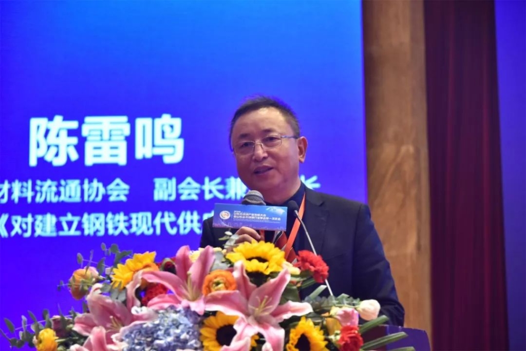中国金属材料流通协会副会长兼秘书长陈雷鸣作题为《对建立钢铁现代供应链的思考》的演讲。
