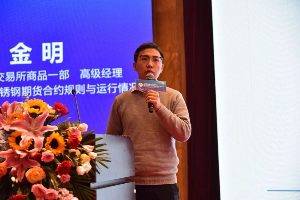 上海期货交易所商品一部高级经理金明作题为《不锈钢期货合约规则与运行情况》的演讲。