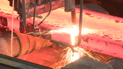 在不锈钢事业部轧钢生产线的主控室里,两名戴着安全帽和口罩的工人正紧盯着电脑屏幕,随着几个按钮依次摁下,一条火龙从加热炉里咆哮而出,钻过三连轧机,跑完500米轧道,最后在卷取机上温顺盘旋……