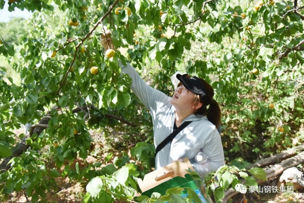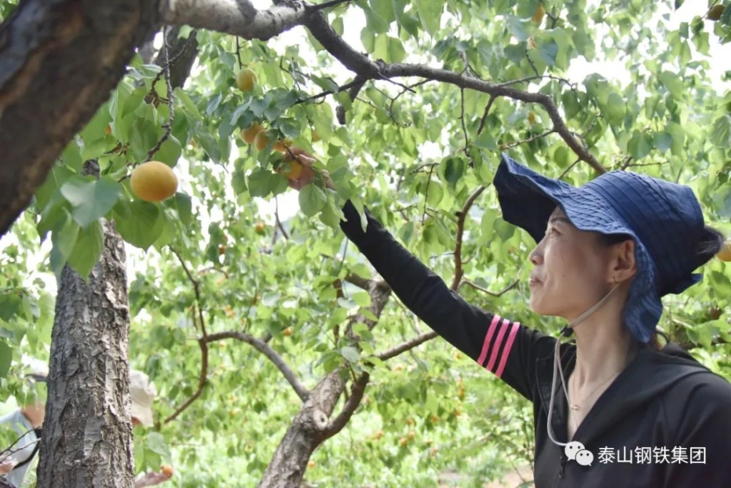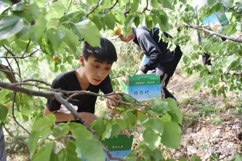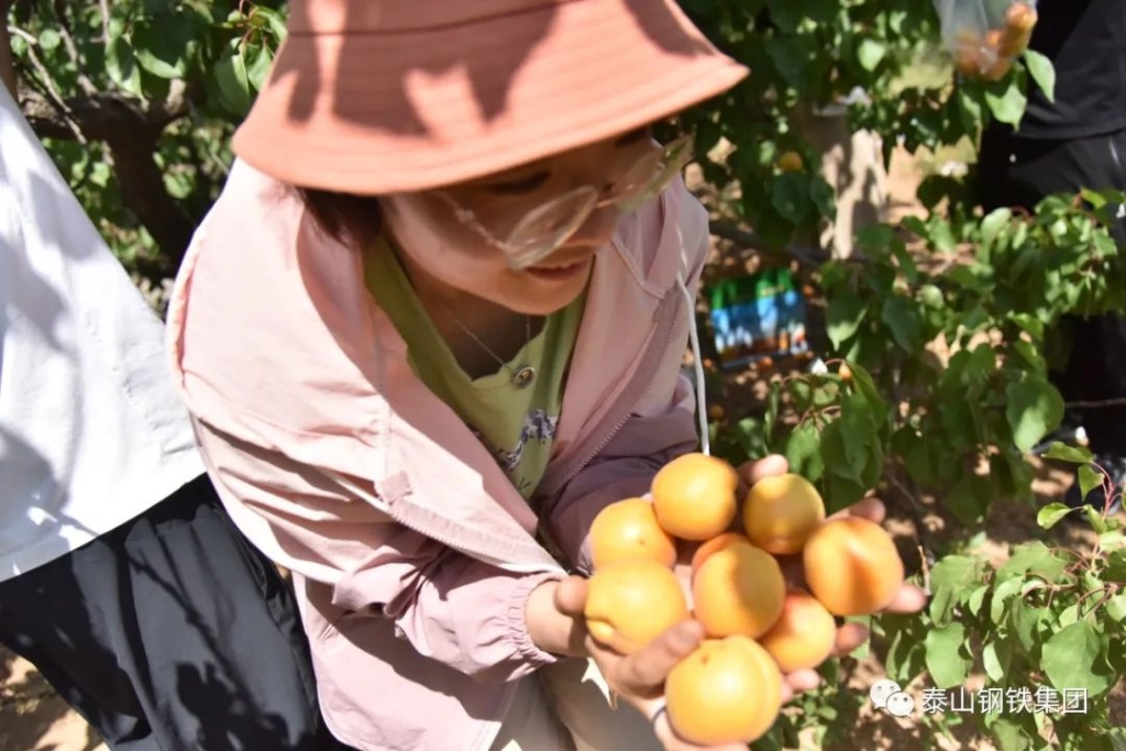 在杏林里,泰钢志愿者们化身忙碌的果农,感受劳动的乐趣,还自费购买了1000余斤杏。