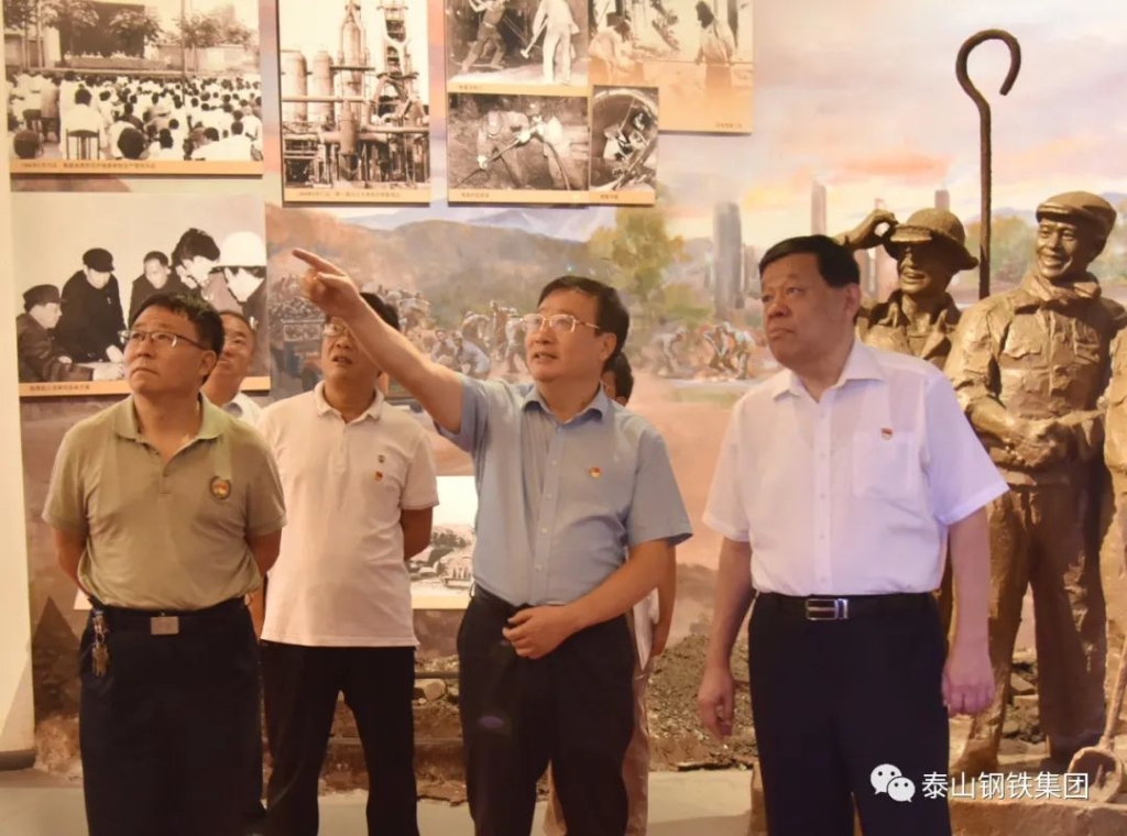 揭牌仪式后,王董事长陪同董海燕一行参观了泰钢精神主题展览馆,介绍了