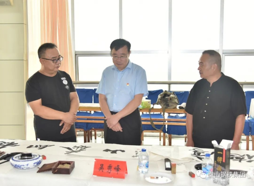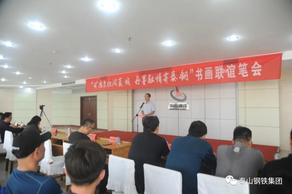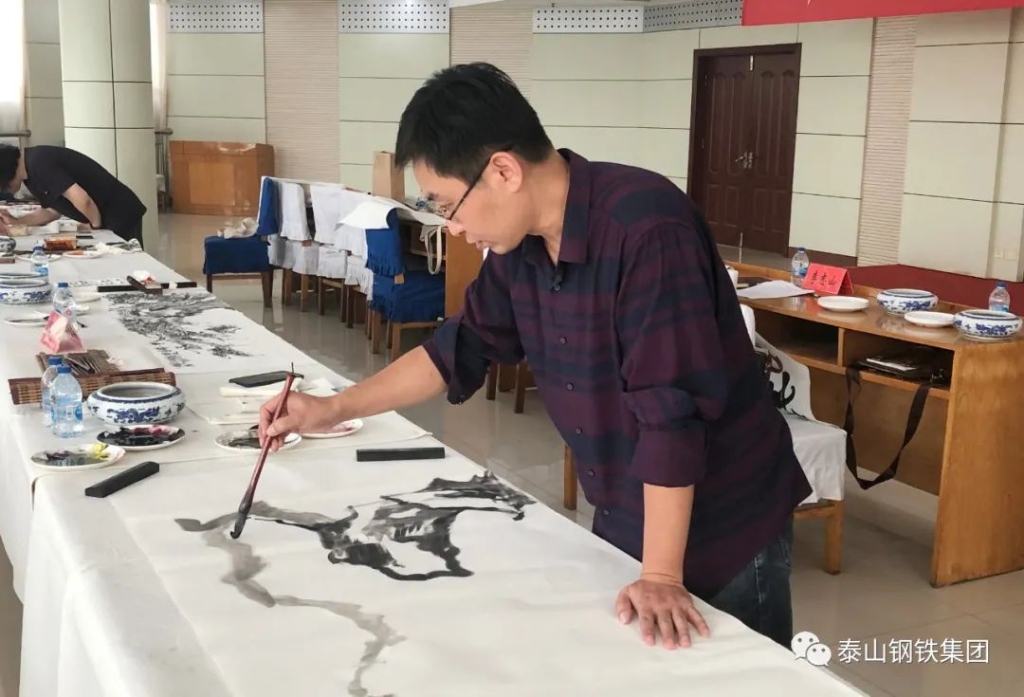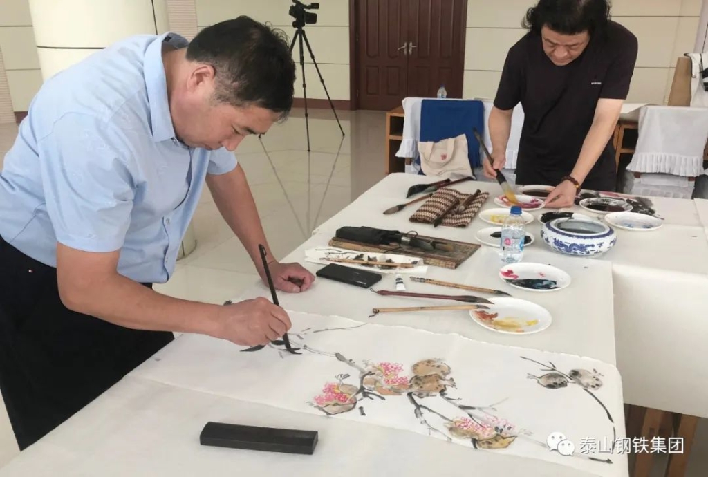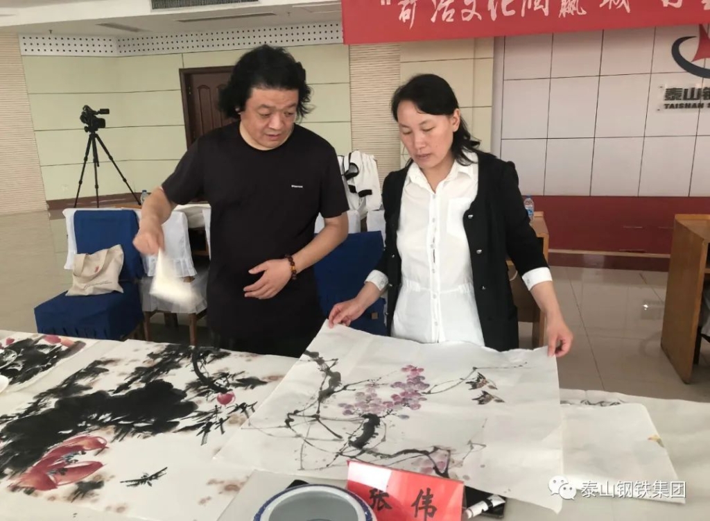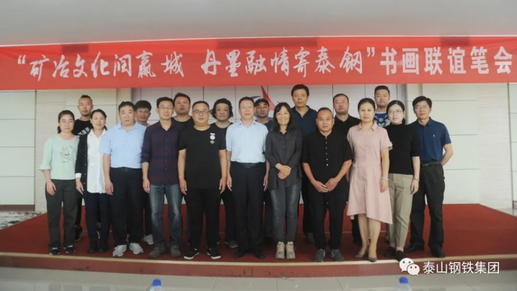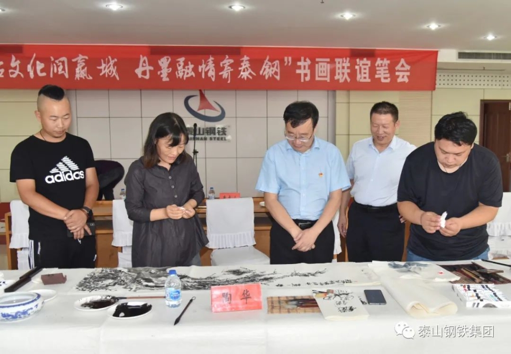 (莱芜区书法家、美术家协会的书画家们与泰钢文联的书法绘画爱好者们交流心得)