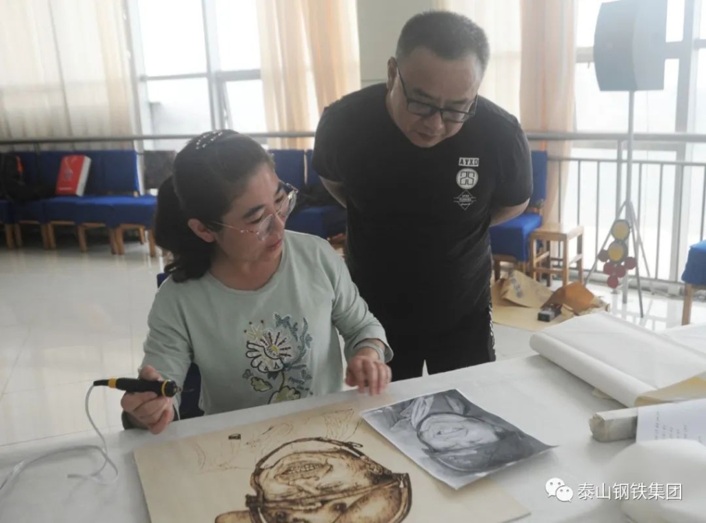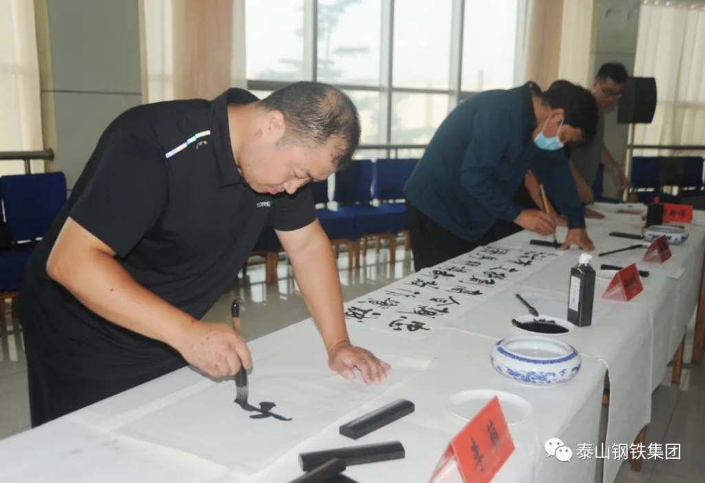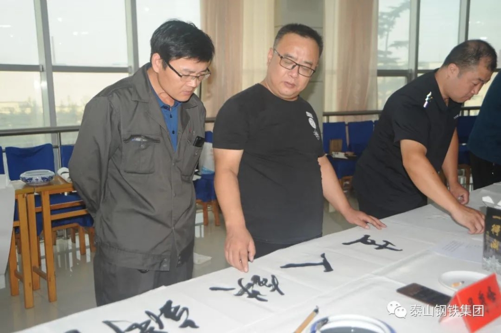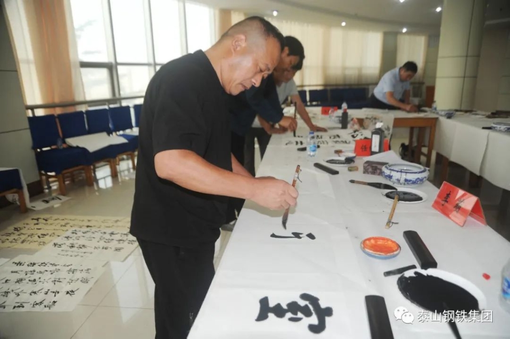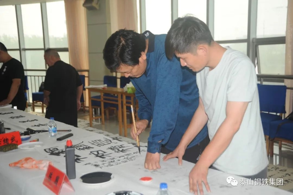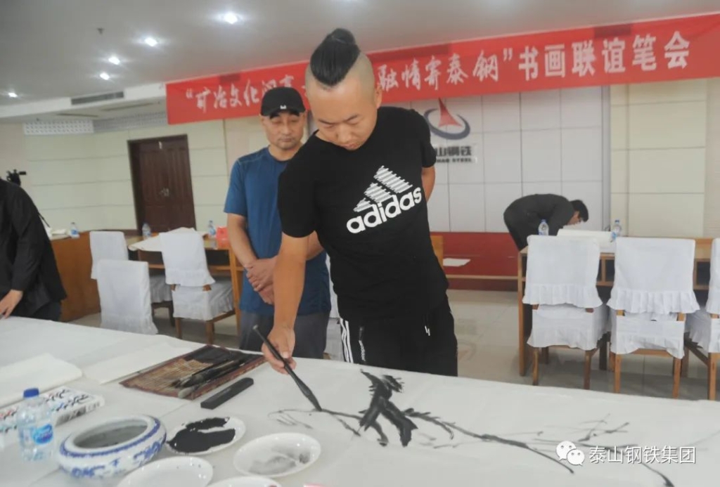 (莱芜区书法家、美术家协会的书画家们与泰钢文联的书法绘画爱好者们交流心得)