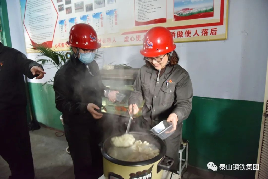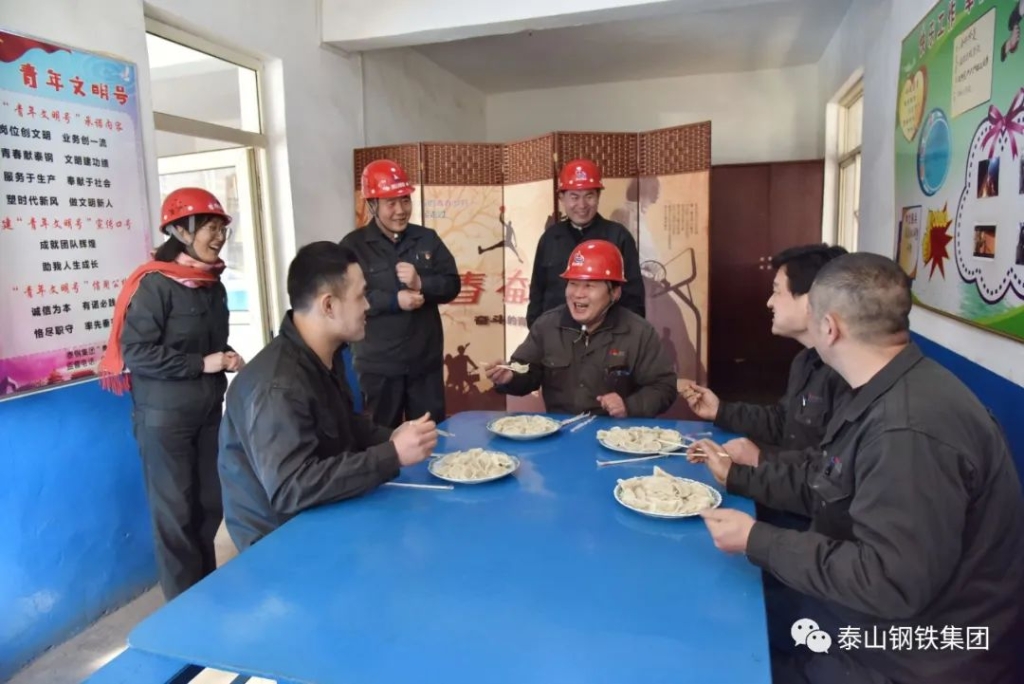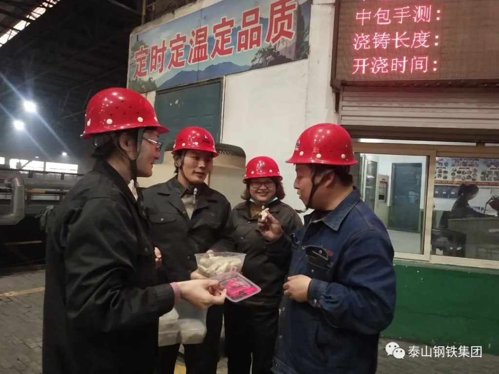 ”,在炼铁部的岗位职工们收到了一份特殊的节日礼物——一盘盘热气腾腾的水饺。大家吃着