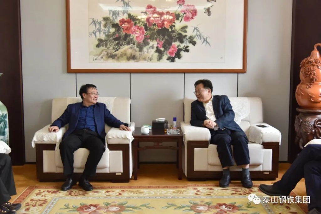 3月8日,山东省不锈钢行业协会会长、泰山钢铁集团董事长、党委书记、总裁 王永胜在办公楼贵宾室会见了佛山市金属材料行业协会执行会长李强,双方共同探 讨了未来不锈钢产业发展趋势和不锈钢产品应用。集团党委成员、总监邵书东,总监陈培敦、李海洋参加座谈。