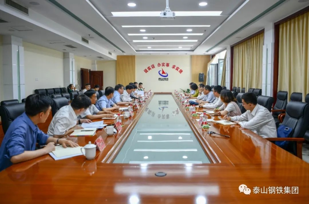 6月2日济南市商务局党组书记、局长孙战宇带队来泰山钢铁集团开展专题调研活动。在经贸楼会议室座谈会上,莱芜区委书记、高新区党工委书记朱云生,莱芜区区委副书记、区长秦蕾,莱芜区副区长时波等区领导介绍了区相关工作情况,集团董事长、党委书记、总裁王永胜介绍了集团今年的生产经营情况和未来规划。