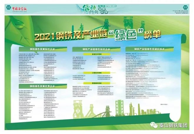 近日,由中国冶金报社组织的2021“寻找最美绿色钢城”评选结果揭晓。其中,泰山钢铁集团获评为“绿色发展标杆企业”。走好绿色、低碳、可持续发展之路