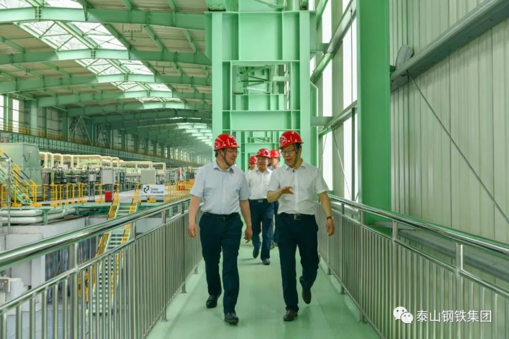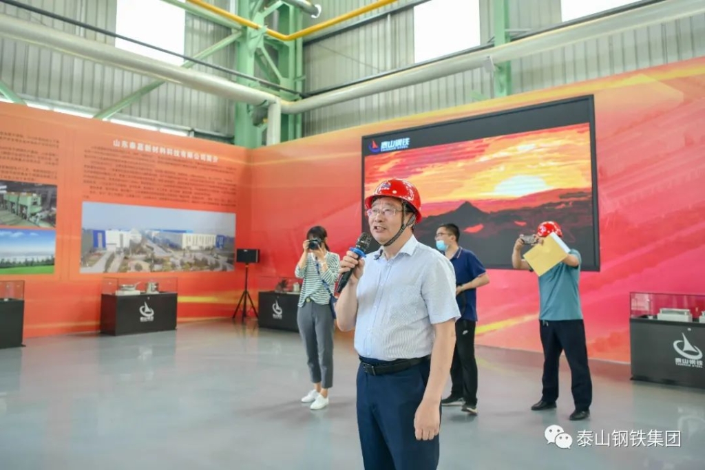 在泰嘉不锈钢冷轧板材深加工项目生产现场,王董事长向客人们介绍了集团的发展历程、党建文化、不锈钢生产经营情况。他说,