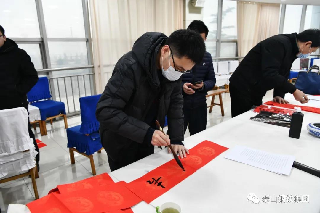 为认真贯彻党的十九届六中全会精神,弘扬中华优秀传统文化,营造欢乐喜庆祥和的节日氛围,1月12日上午,由区文联(区社科联)、泰钢文联联合主办,区书法家协会、泰钢书法协会承办的“春‘莱’福至——莱芜区文联送春联送福字走进泰山钢铁暨泰钢文联‘文艺筑梦’志愿服务项目”在集团公司经贸楼三楼会议室举行。