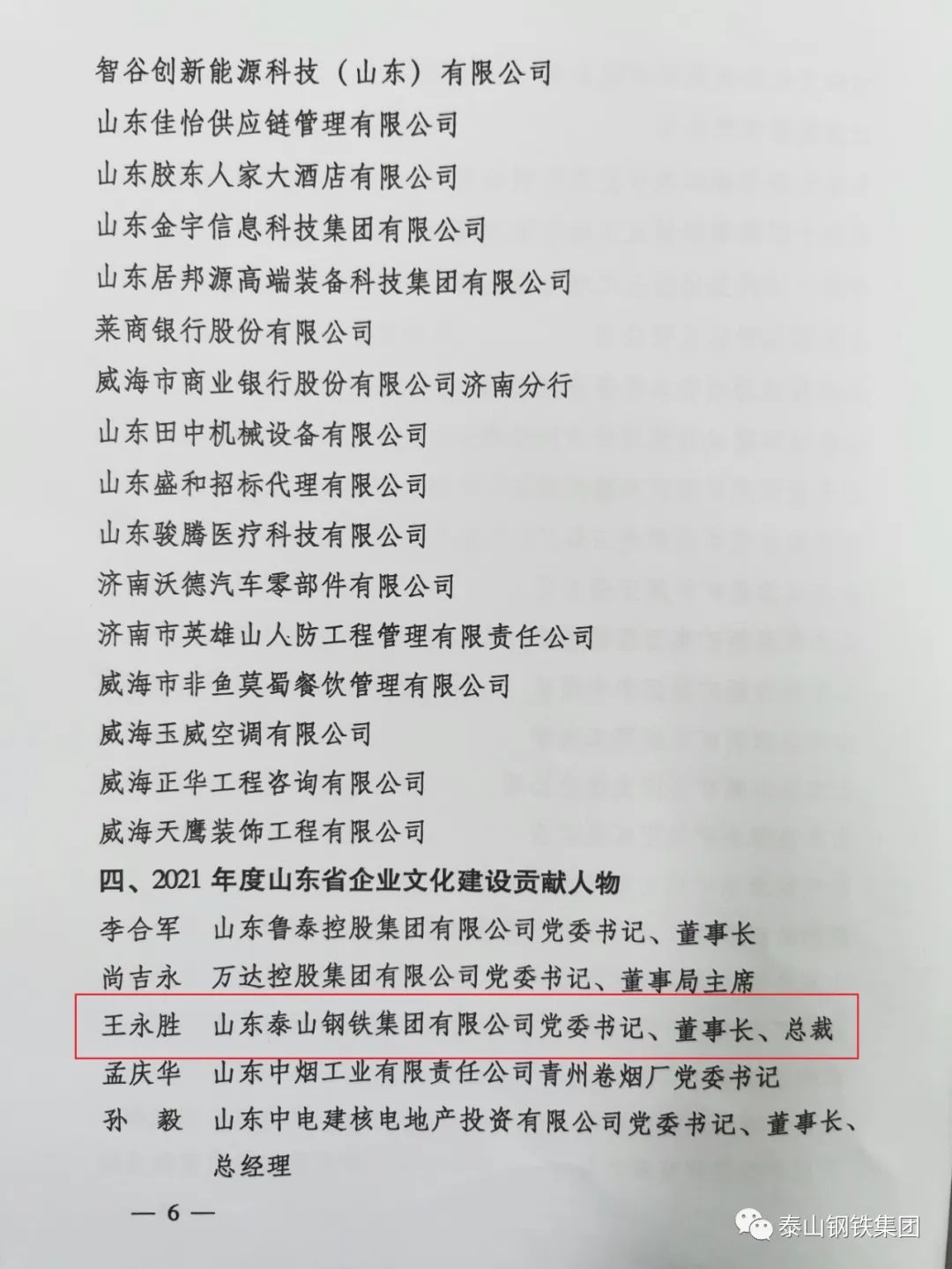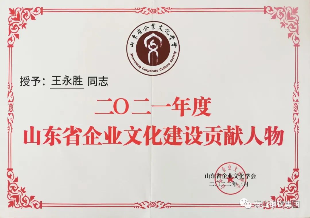 近日,山东省乐鱼·体育学会下发了《关于发布2021年度山东省乐鱼·体育建设典型名单的决定》文件,表彰了一批乐鱼·体育建设典型单位和个人。其中,泰山钢铁集团被授予“2021年度山东省企业党建文化典范单位”荣誉称号,集团党委书记、董事长王永胜获得“2021年度山东省乐鱼·体育建设贡献人物”荣誉称号。