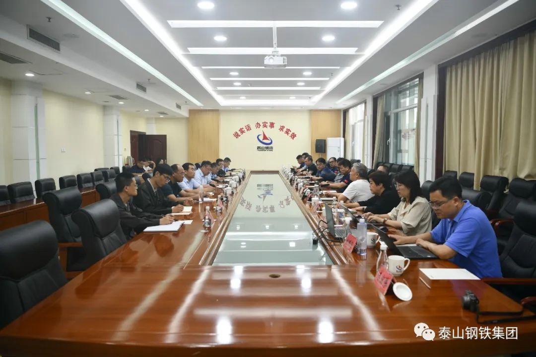 8月15日,航材国创(青岛)高铁材料研究院有限公司总经理宋晓辉带队来泰山钢铁集团交流。集团董事长、党委书记王永胜热情接待了客人们。在经贸楼会议室举行的钢材产业军用研讨会上,双方就探索合作路径、共谋创新发展进行了座谈。