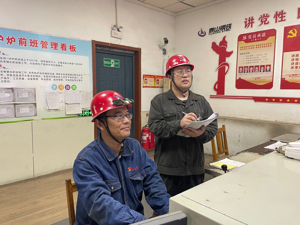 “刚到集团那会,我就干的炼钢,一晃眼,我跟这转炉都相伴小半辈子啦。”孟俊山陷入回忆,缓缓说道。2006年盛夏,20岁的孟俊山初次来到热轧部转炉平台,就被转炉散发的滚滚热浪吓得往后退了半步。老班长用满是老茧的手拍了拍他的肩膀,说道:“小伙子,转炉炼钢是一门手艺,更是一门艺术。”那时的孟俊山仰头望着炉口喷涌的钢花,似懂非懂地点了下头。为了快速掌握转炉工艺操作,孟俊山每天都会提前到岗,紧跟在师傅身后,全神贯注地观察师傅的每一个动作。其他同事都下班了,他依然坐在桌前,将工作中遇到的问题与解决方法记录在笔记本上,再带回家琢磨研究。随着时间的推移,那本笔记本渐渐泛黄,他的技能水平也越来越高。十多年间,他凭借着踏实肯干的工作作风逐步从初出茅庐的炉前工,成长为能够精准把控冶炼节奏的一助手,后来成了能独当一面的转炉炉长。2022年,他再次被领导委以重任,担任转炉车间的工艺技术员。