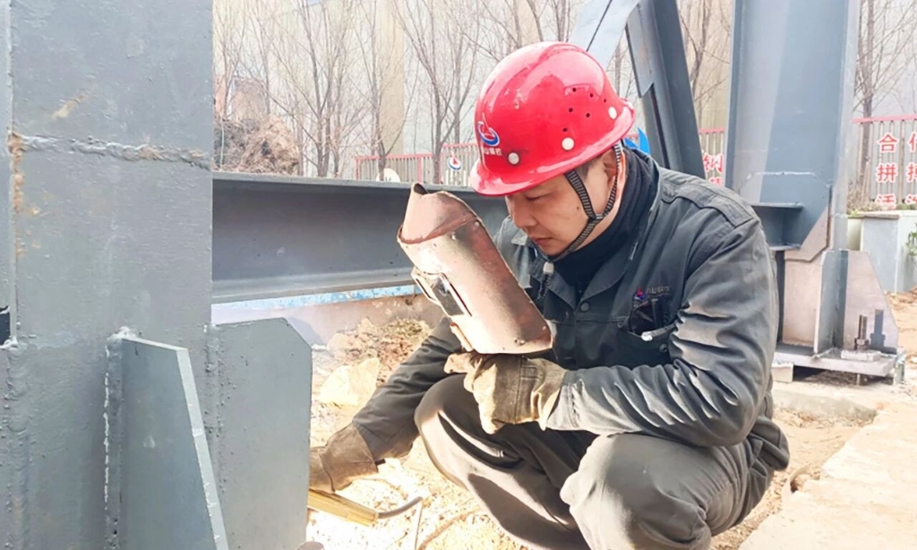 旧皮带廊顺利拆卸落地后,精确测量与框架焊接成为决定后续安装精度和工程质量的关键环节。“皮带廊每一节都有20米长,尺寸稍有偏差,后续对接就会出现缝隙,必须认真调整、严格把控。”卓庆杰一边反复叮嘱身边的同事,一边手持卷尺、拐尺,围着皮带廊框架一遍遍测量、核对,不放过任何一个细节。料峭的寒风把他的双手冻得通红,但他丝毫不在意,只专注于测量数据。在他的严格把控下,每一处焊接都规整标准,每一个接口都精准契合,为后续的安装工作打下了坚实的基础。
