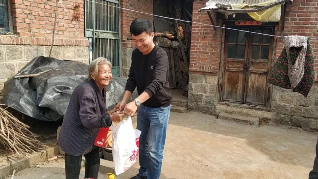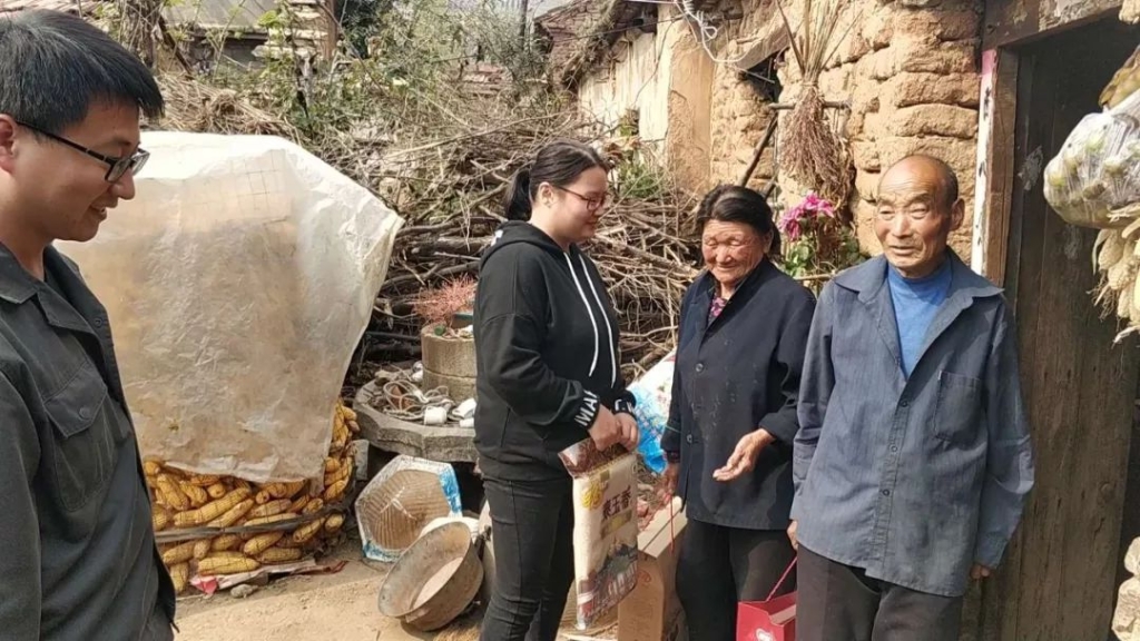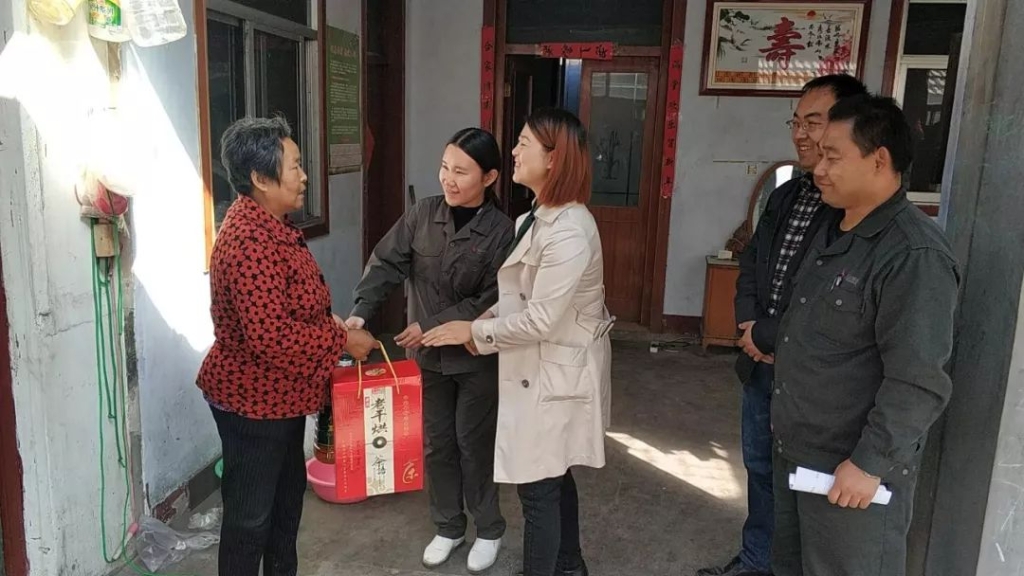 在重阳节到来之际,泰山钢铁集团青年文明号志愿者们在团委组织下,来到莱城区苗山镇王家庄村和五色崖村,看望部分生活困难老人,并为他们送去油、大米、鸡蛋等生活用品。