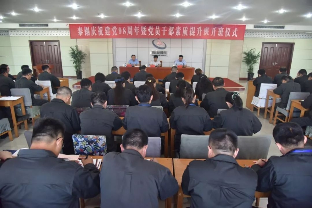 今天是中国共产党成立98周年纪念日,在这个值得庆祝的日子里,泰山钢铁集团在经贸楼举行了庆祝建党98周年暨党员干部素质提升班开班仪式。济南市委党校副校长孟庆忠,泰山钢铁集团党委书记、董事长、总裁王永胜出席会议作重要讲话。