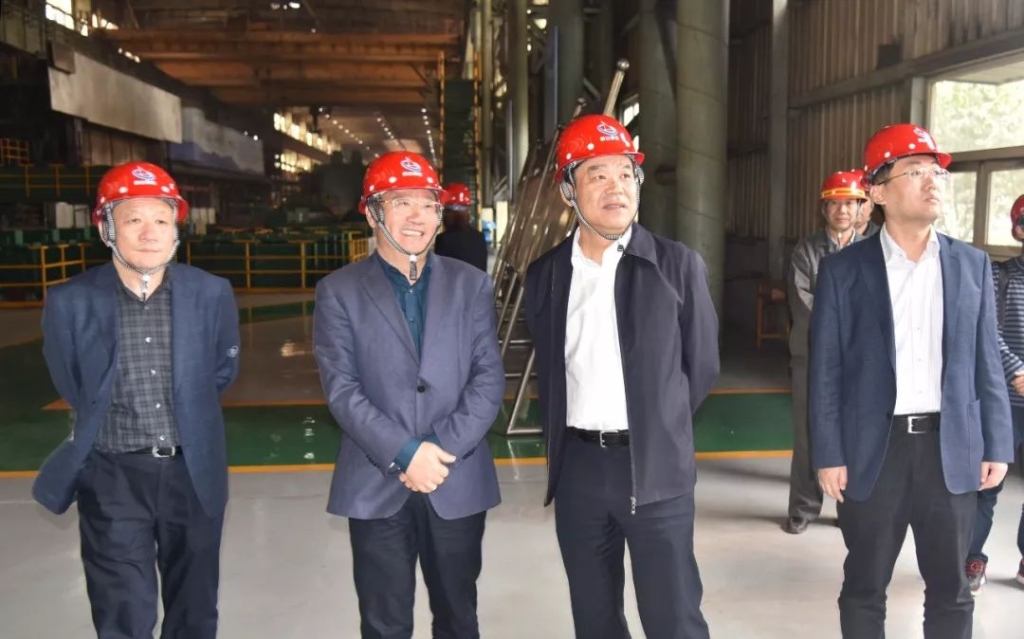 王董事长和靳磊局长在不锈钢轧钢生产现场