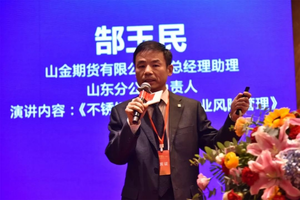 山金期货有限公司总经理助理、山东分公司负责人郜玉民作题为《不锈钢期货助理企业风险管理》的演讲。
