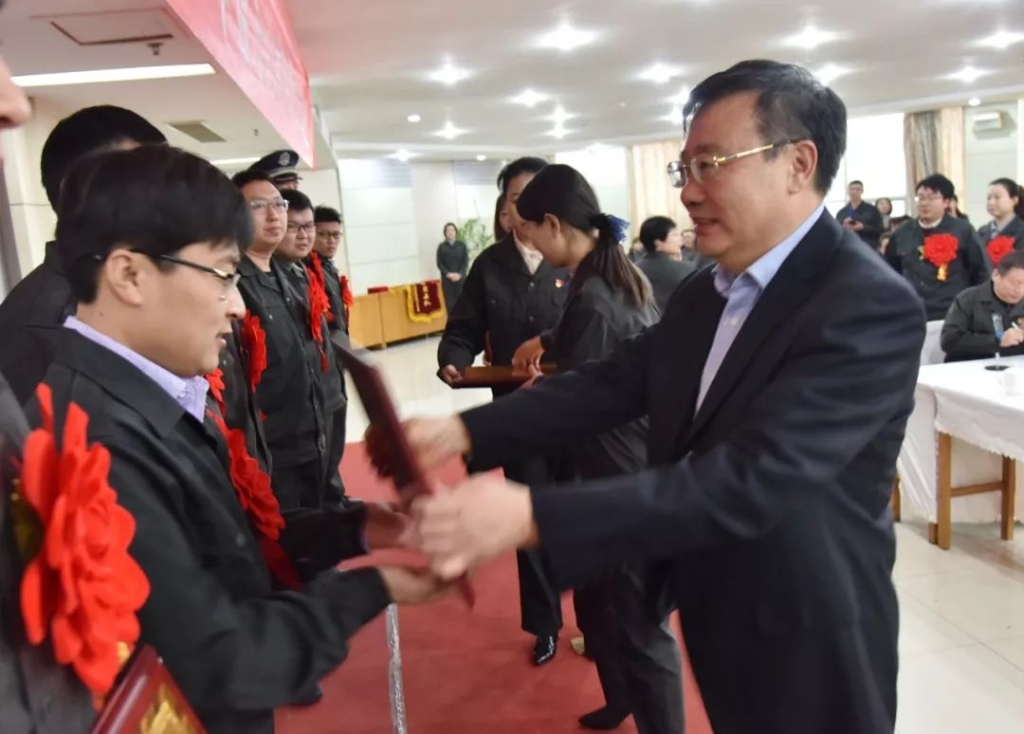 在喜庆的乐曲声和热烈的掌声中,王书记为先进单位和先进个人代表颁奖。