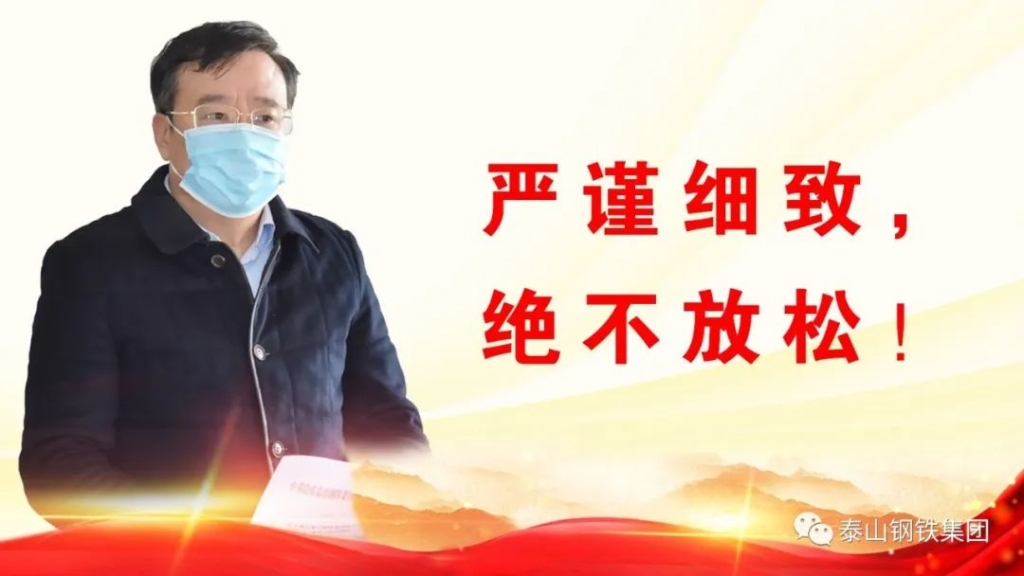 针对各单位下一步的工作,王董事长提出了“严谨细致,绝不放松”要求,需要我们全体泰钢人拿出更加饱满的精神、更加积极的行动、更加过硬的作风,从严从实、真抓实干、善作善成,抓好防疫、干好生产,在疫情防控阻击战中经受住考验、夺取最后的胜利!