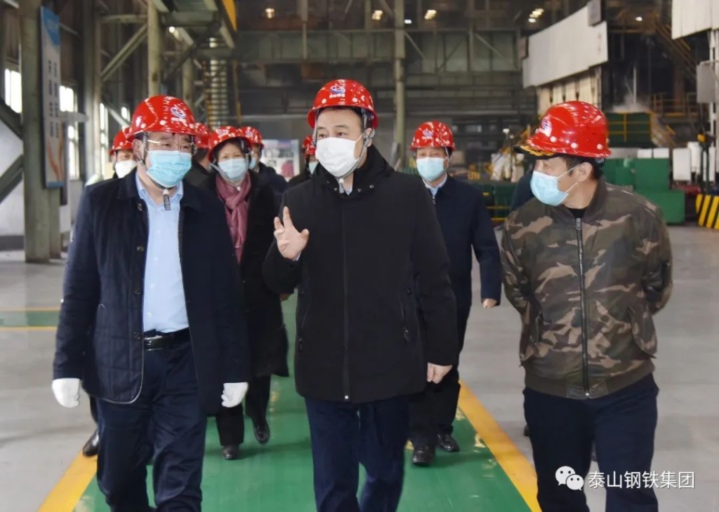 (王董事长陪同刘主席调研不锈钢轧钢生产线)