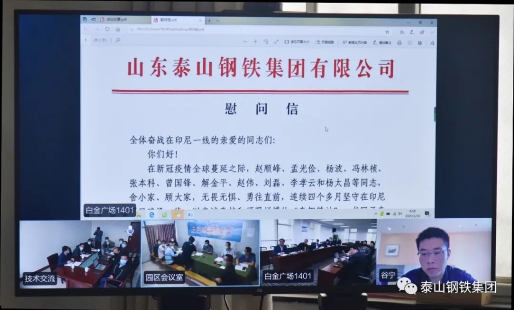 在新冠疫情全球蔓延之际,赵顺峰、孟光俭、杨波、冯林祯、 张本科、曾国锋、解金平、赵伟、刘磊、李孝云和杨太昌等同志,舍小家、顾大家,无畏无惧、勇往直前,连续四个多月坚守在印尼项目建设一线,以忠诚奉献和顽强拼搏的“泰钢精神”,书写了泰钢人守土有责、守土尽责的责任担当,是新时代泰钢人的杰出代表。在此,我代表集团公司全体干部职工,向你们致以亲切的慰问!向默默奉献、支持你们的家人致以衷心的感谢!