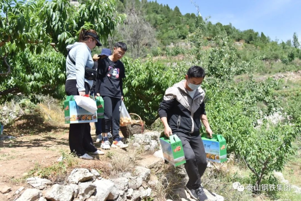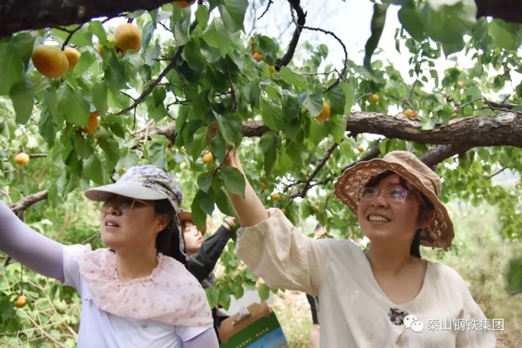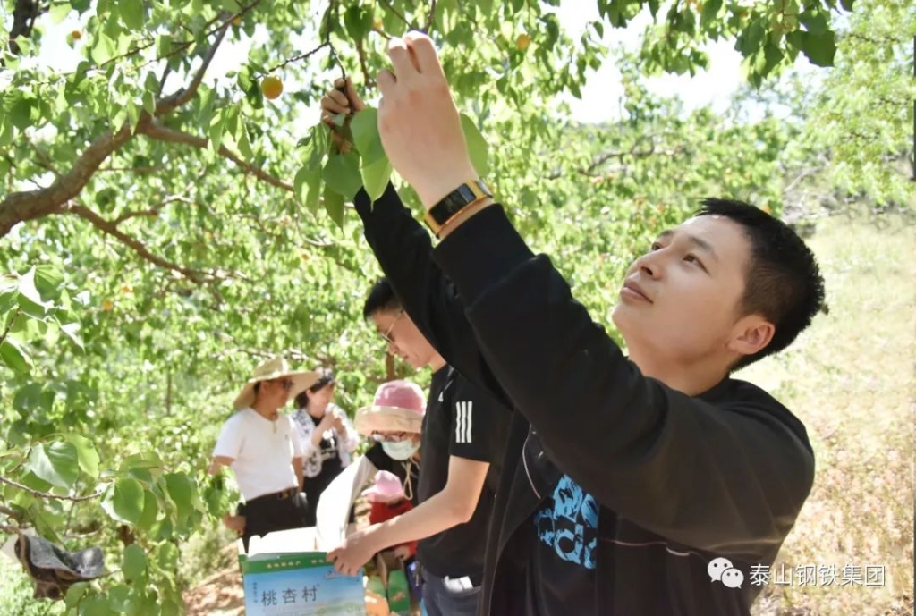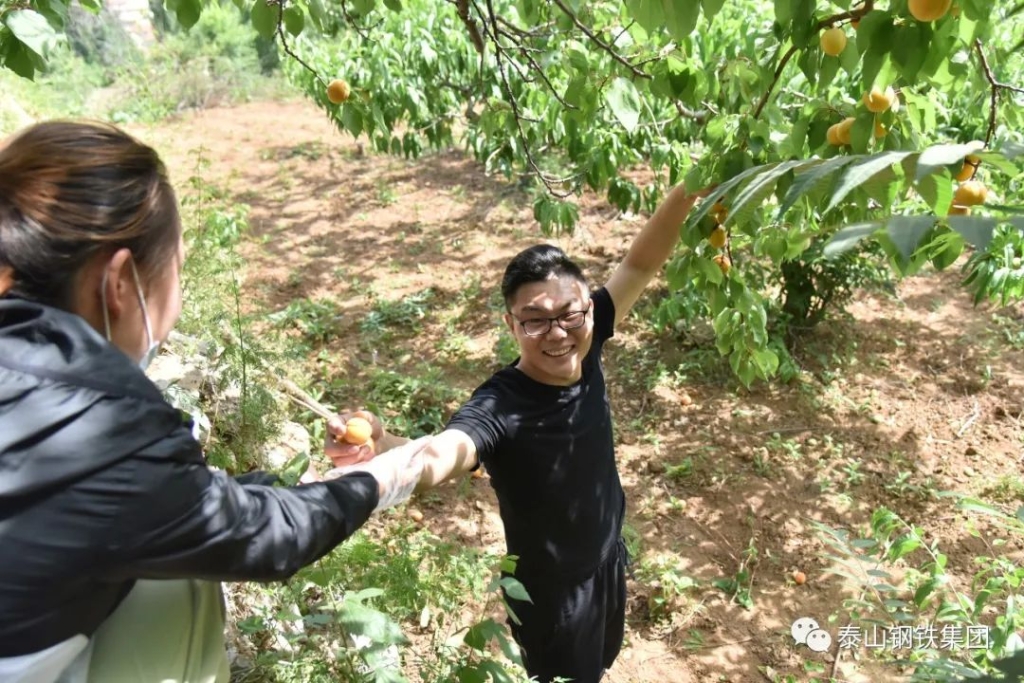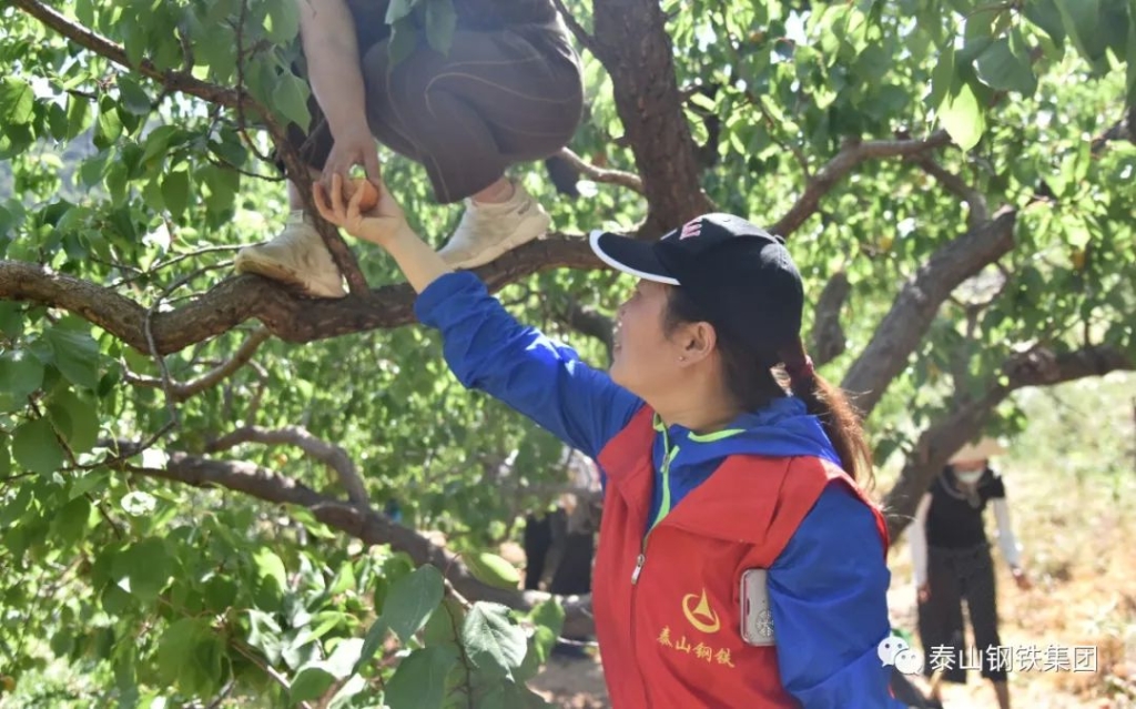 在杏林里,泰钢志愿者们化身忙碌的果农,感受劳动的乐趣,还自费购买了1000余斤杏。