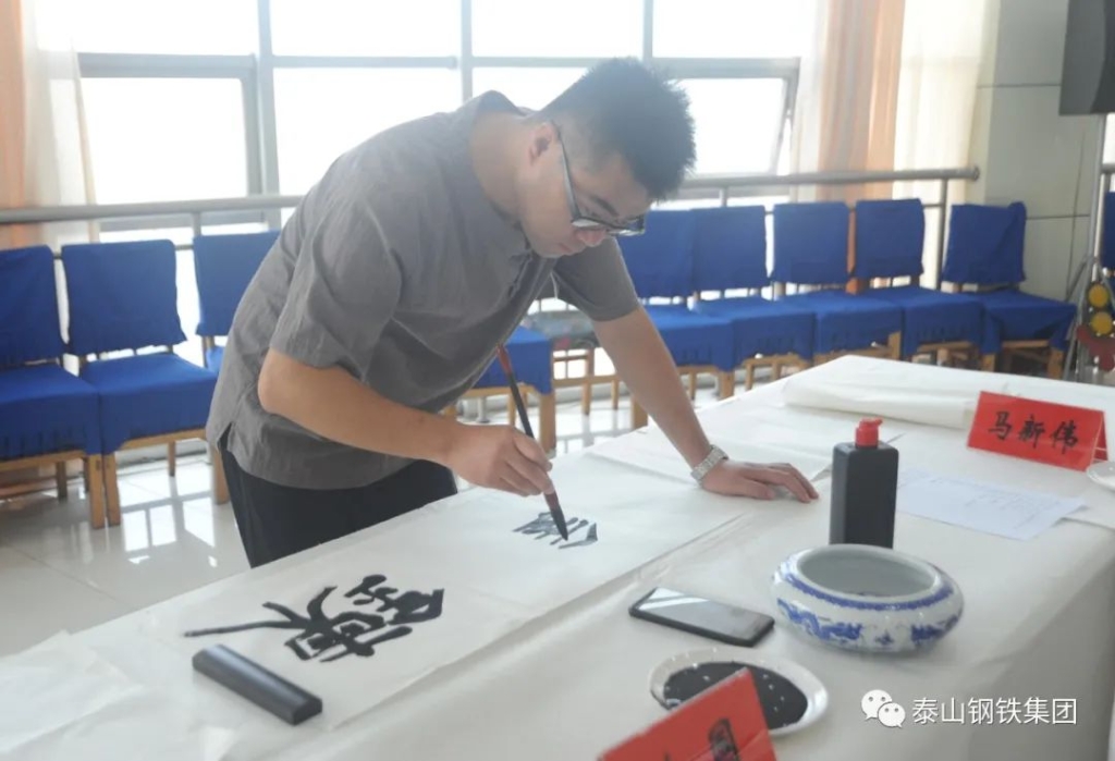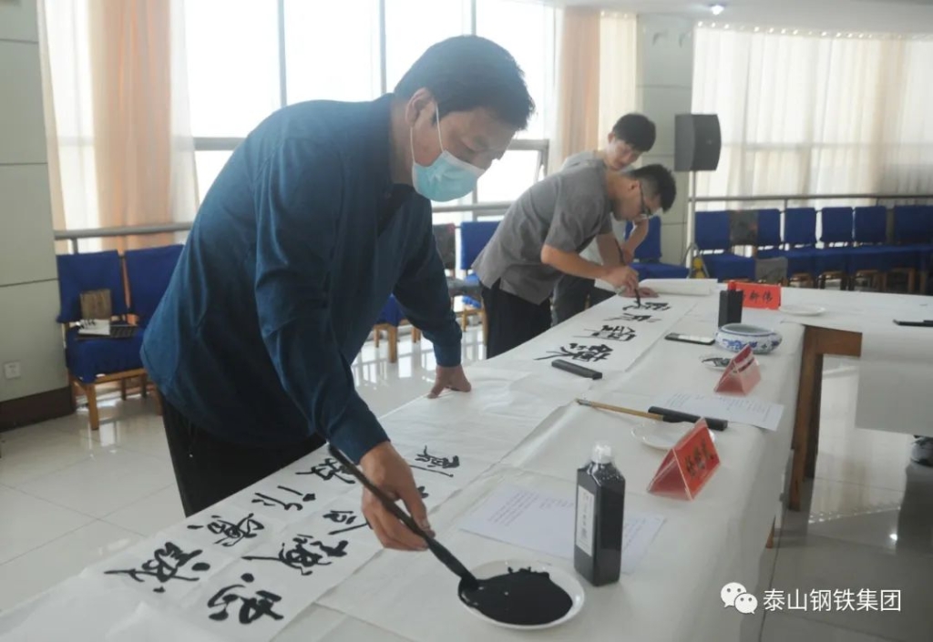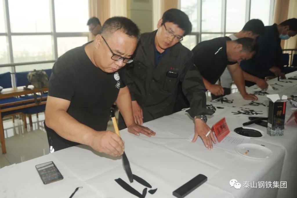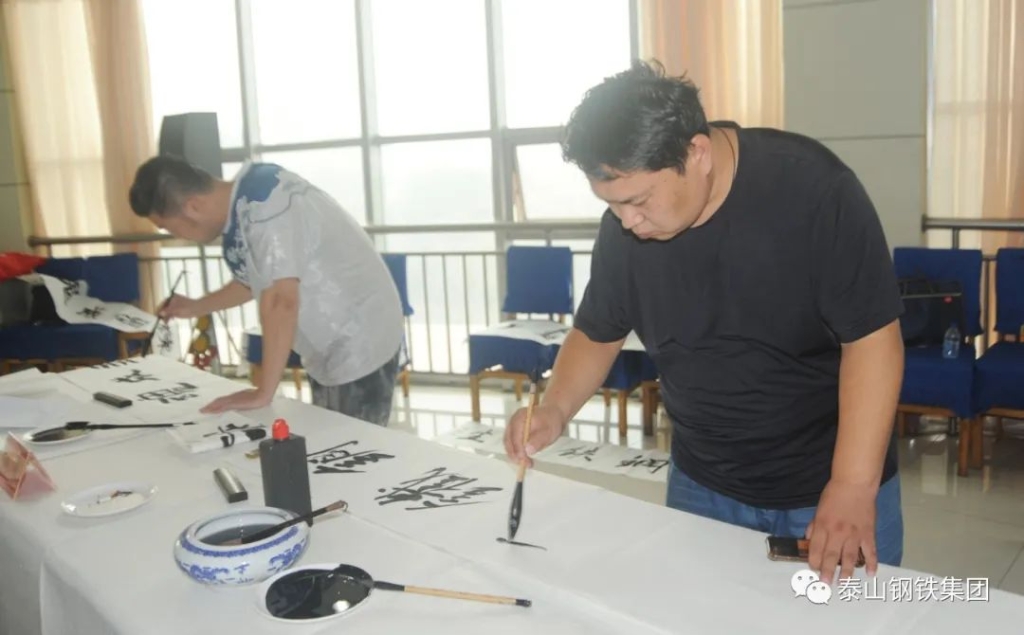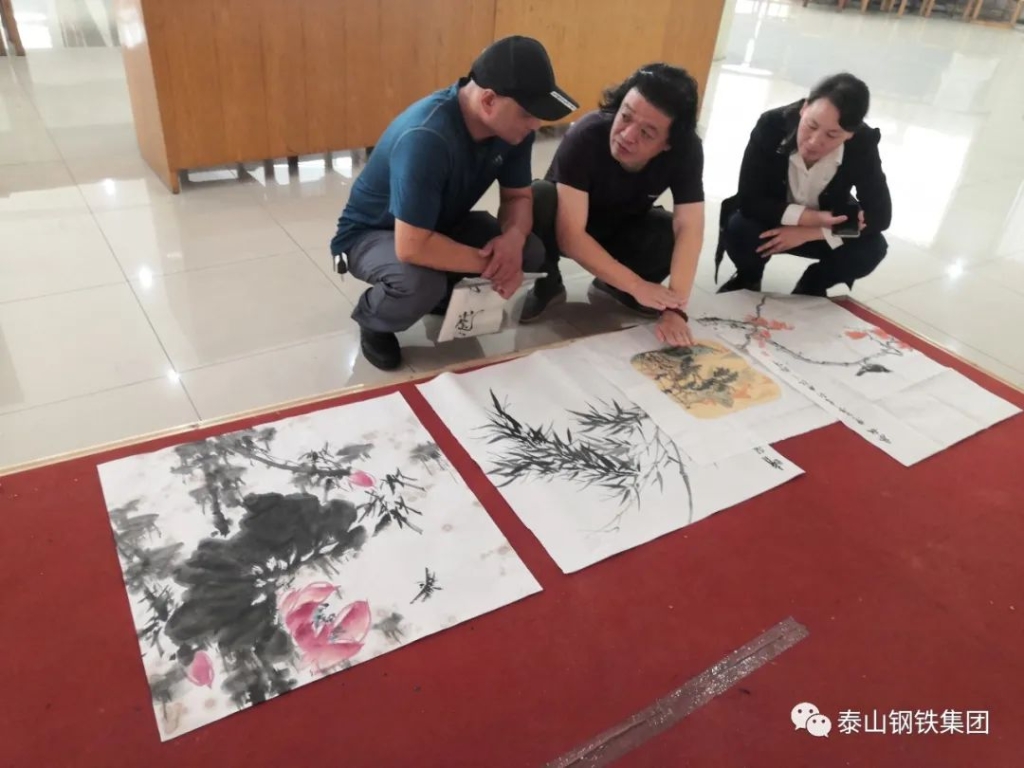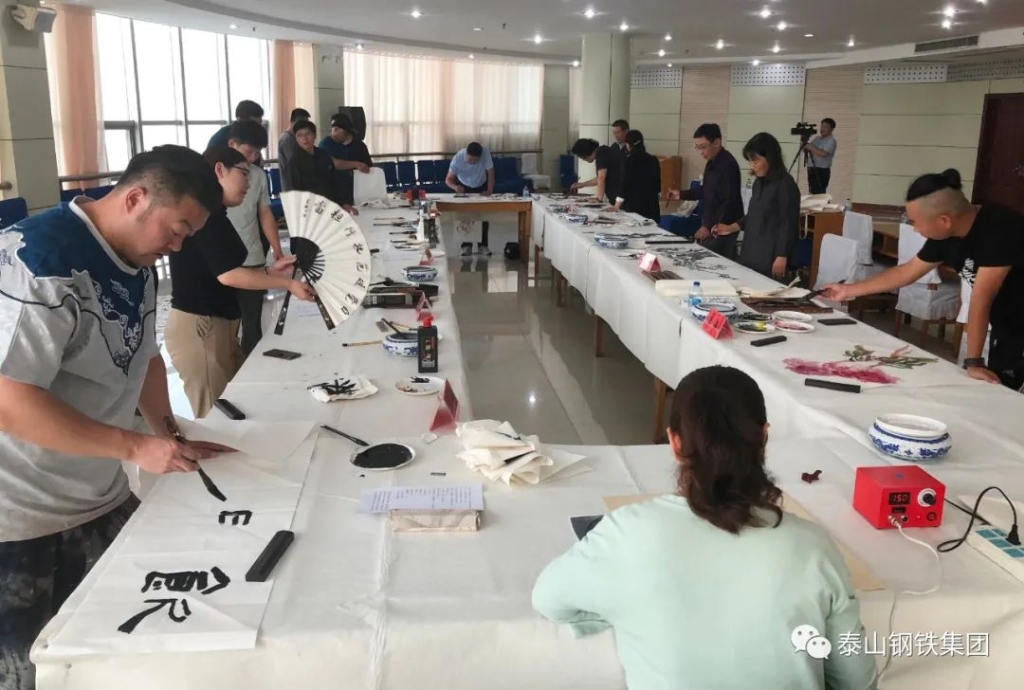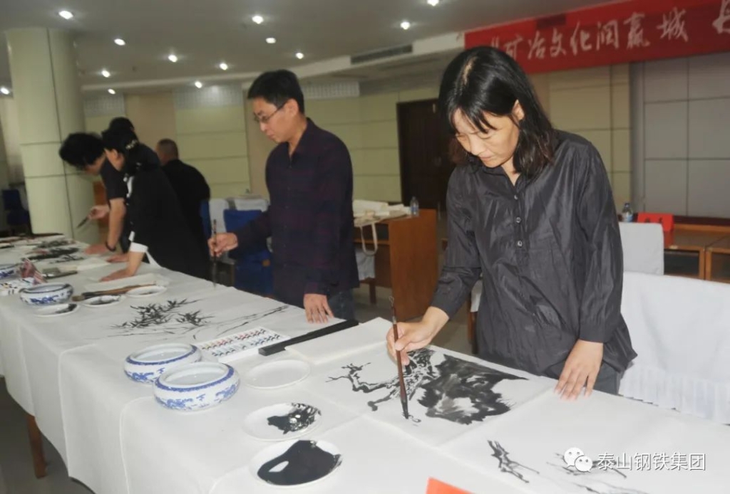 (莱芜区书法家、美术家协会的书画家们与泰钢文联的书法绘画爱好者们交流心得)