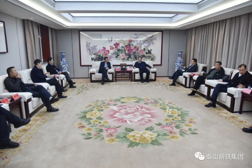 11月24日,济南市政协副主席、市工商联主席刘梦海带领济民投股东和董事一行来泰山钢铁集团参观。在办公楼贵宾室,集团董事长、党委书记、总裁王永胜向客人们介绍了企业发展历程、生产经营、未来规划等情况。