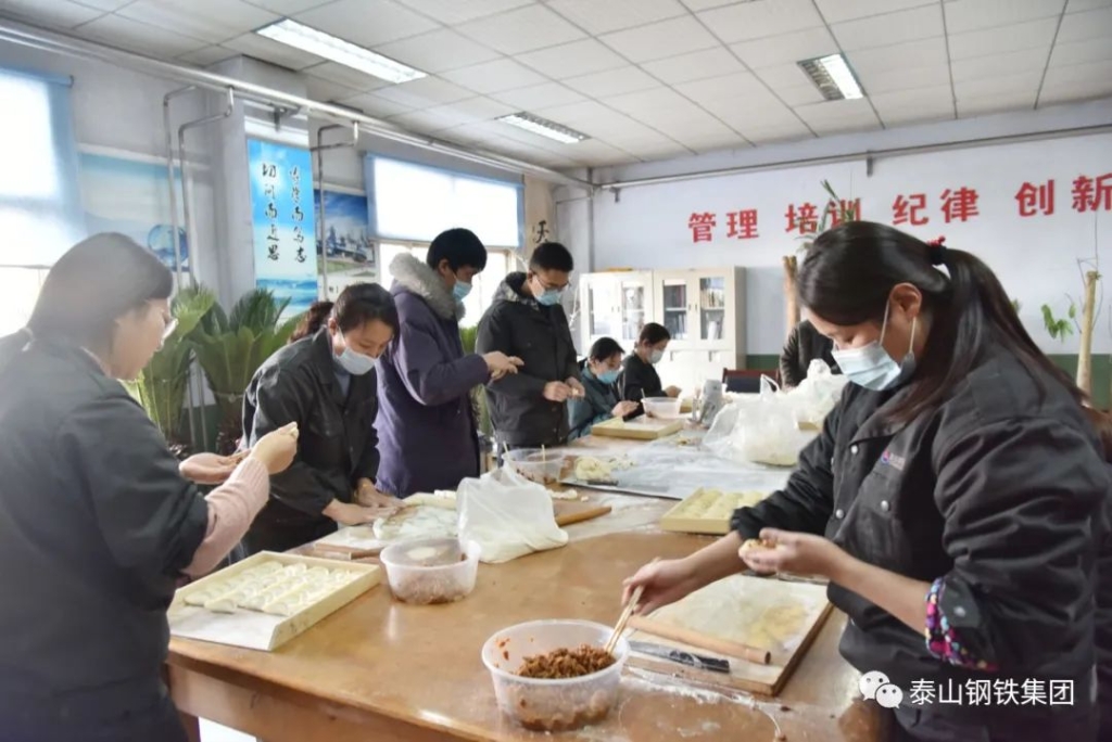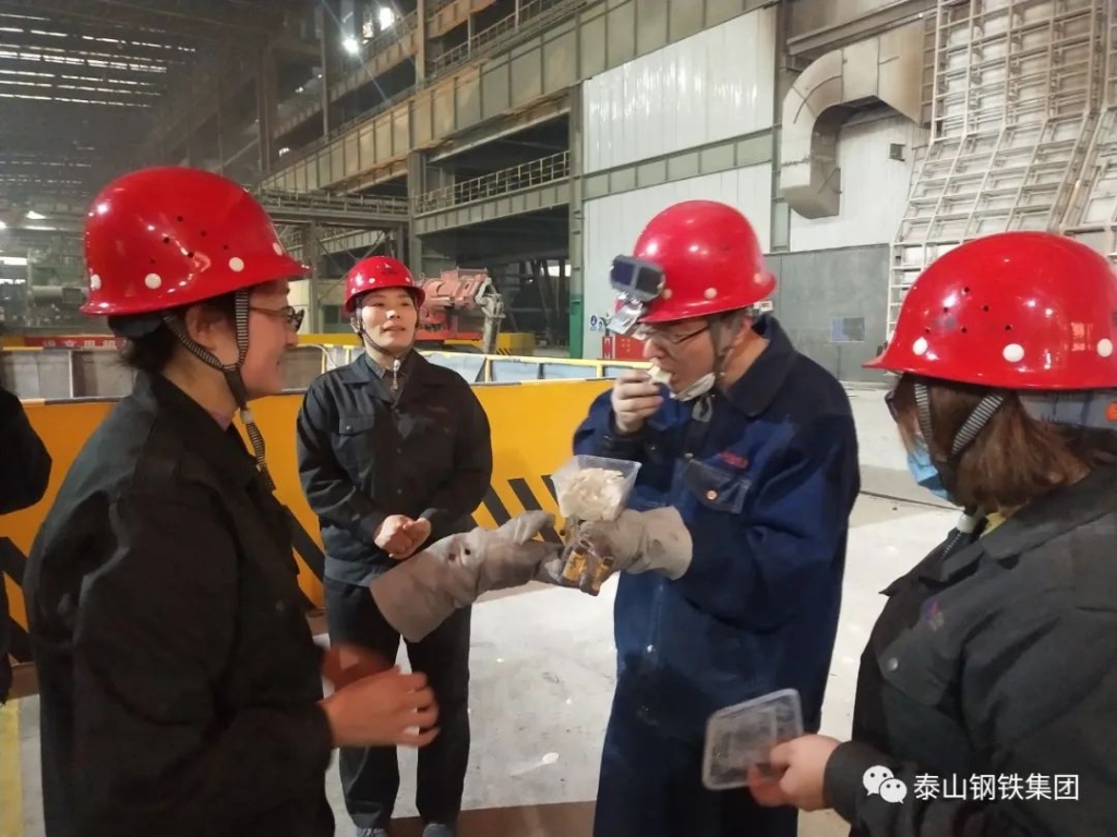 ”,在炼铁部的岗位职工们收到了一份特殊的节日礼物——一盘盘热气腾腾的水饺。大家吃着