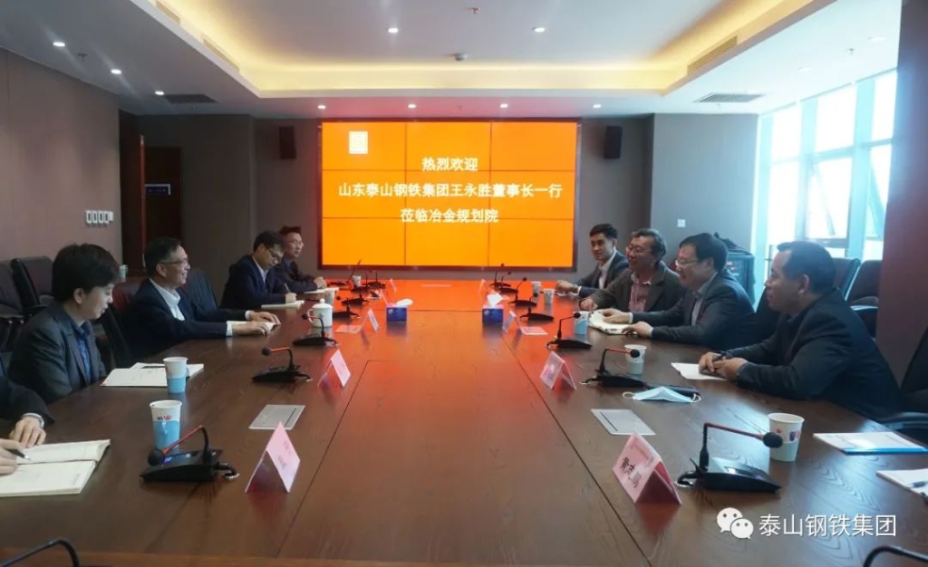 王董事长高度评价了昨天由冶金工业规划研究院等单位举办的“2021(第十二届)中国钢铁发展论坛”,称赞该论坛举办规格高、阵容强、影响大,然后介绍了集团的产业板块、产品结构及生产运行现状。他说,泰山钢铁集团近年来紧抓供给侧结构性改革和山东省推进新旧动能转换的历史机遇,坚持专业化、精品化发展,扎实推进安全环保工作,积极探索科技创新与国际化发展,在“十四五”高质量发展新形势下,泰山钢铁面临新的发展机遇和责任担当,希望冶金规划院能够助力泰山钢铁做好顶层设计,进一步提质增效,科学规划绿色低碳发展,全面提升竞争力。期待双方在进一步的亲密合作中,能够