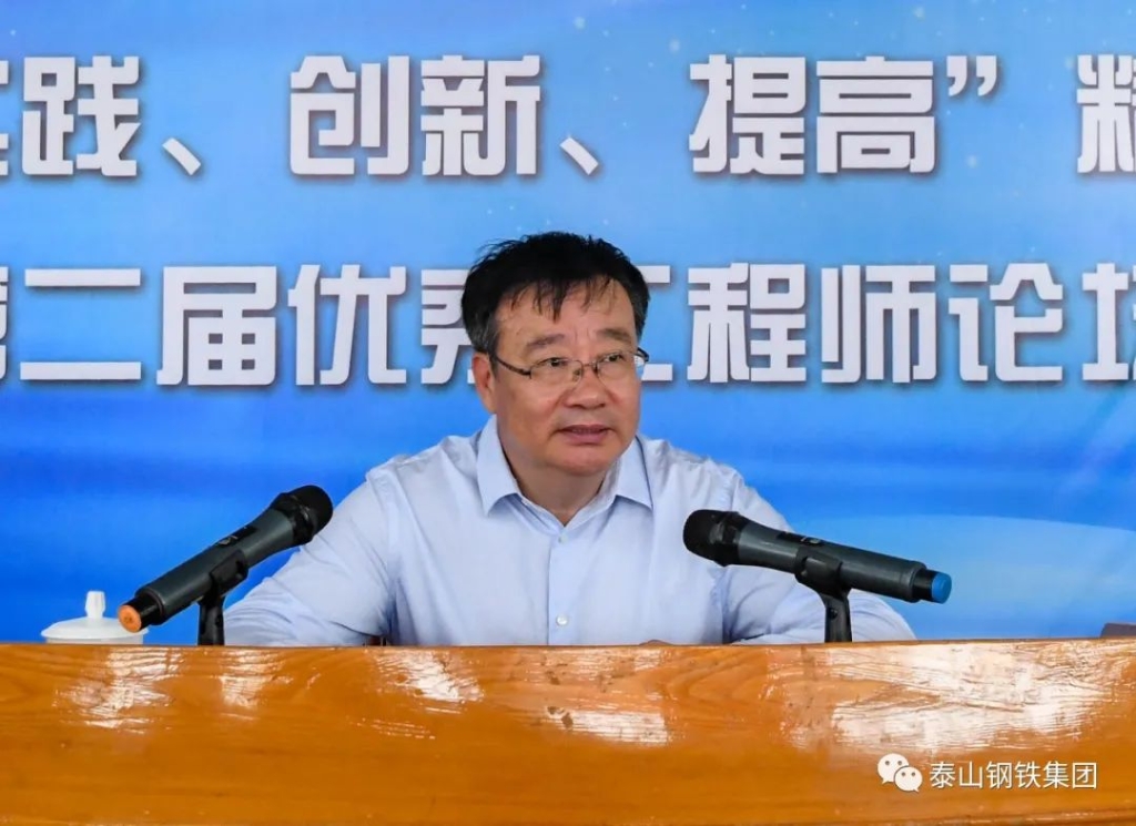 在热烈的掌声中,王董事长走上主席台,发表了热情洋溢的讲话。他指出,在全国科协第十次代表大会召开之际,在集团全面开展“学习、实践、创新、提高”主题活动的开局阶段,集团召开第二届优秀工程师论坛,非常及时、十分必要。这对于我们学技术、学业务具有重要意义,也将进一步增强我们的责任感、紧迫感、使命感,为集团建设“五个新泰钢”积蓄强大力量。王董事长说,高质量发展,科技先行。无论是近代中国的屈辱史,还是当今残酷的市场竞争,都深刻诠释了“落后就要挨打”“落后就要被淘汰”的道理。几十年来,我们坚持“四轮驱动”发展战略,把党的领导和思想政治工作作为“方向轮”,企业管理和科技进步作为“动力轮”,实现了企业向好发展。在高质量发展时代,科技进步是我们面向未来、迎接挑战的根本依靠,必须坚定不移地传承好、发扬好。