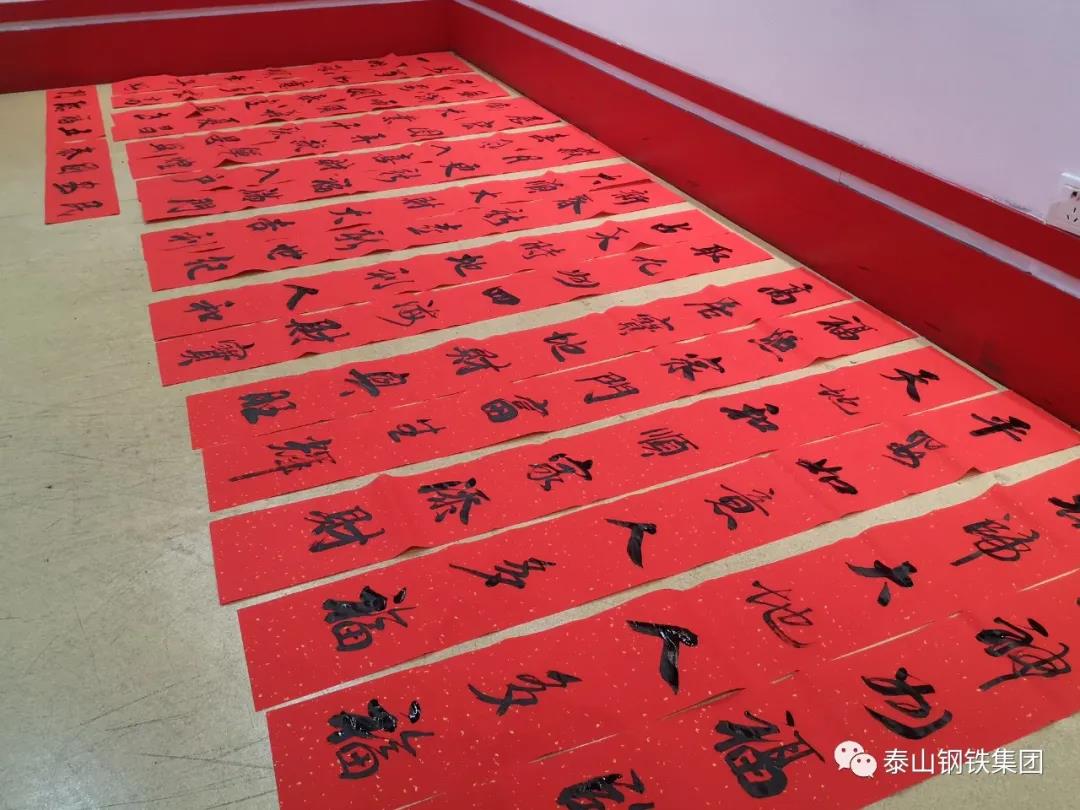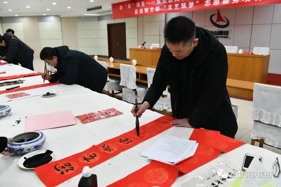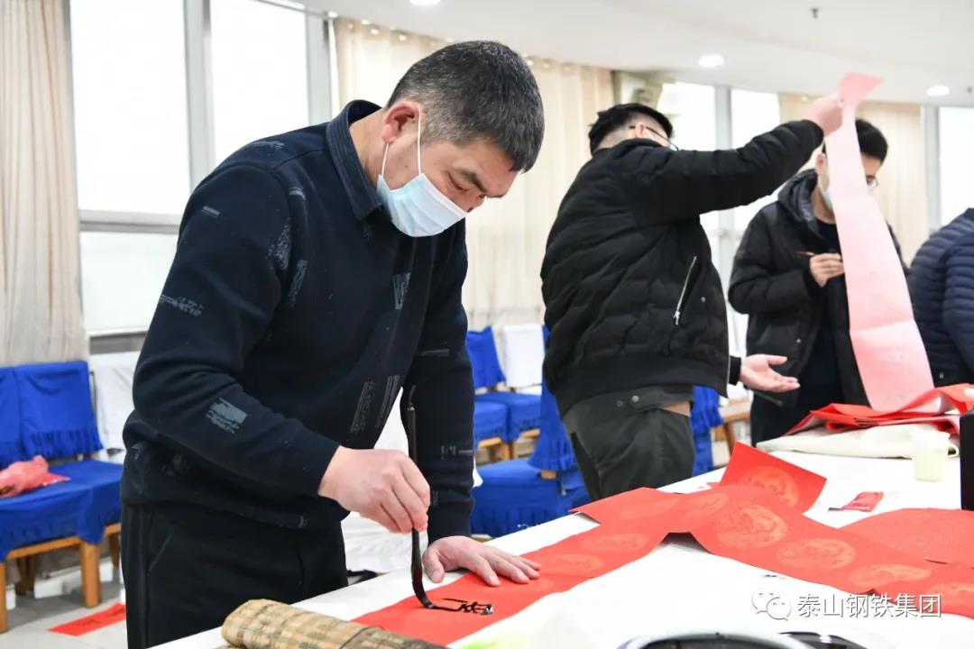 为认真贯彻党的十九届六中全会精神,弘扬中华优秀传统文化,营造欢乐喜庆祥和的节日氛围,1月12日上午,由区文联(区社科联)、泰钢文联联合主办,区书法家协会、泰钢书法协会承办的“春‘莱’福至——莱芜区文联送春联送福字走进泰山钢铁暨泰钢文联‘文艺筑梦’志愿服务项目”在集团公司经贸楼三楼会议室举行。