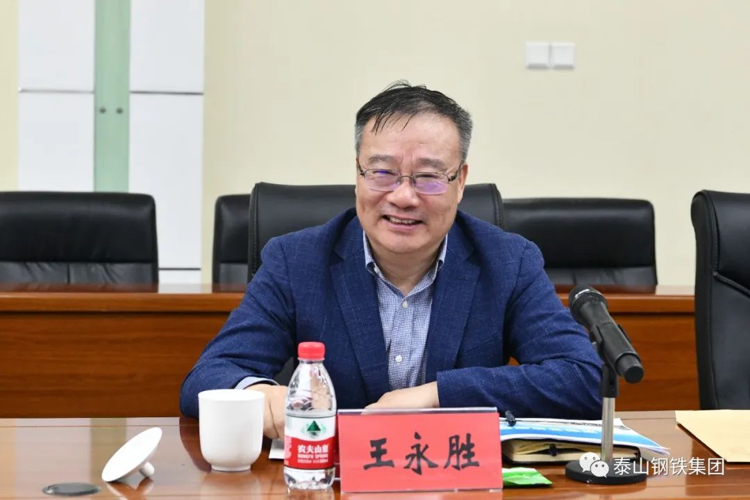 5月12日,在泰山钢铁集团经贸楼会议室,集团董事长、党委书记、总裁王永胜热情接待青岛城投集团党委副书记、总经理臧毅杰一行。