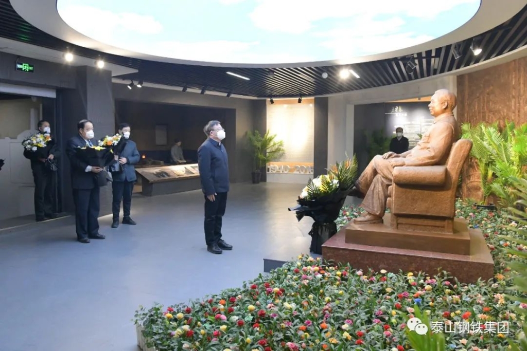2023年1月1日,泰山钢铁集团党委书记、董事长王永胜带领在家公司领导缓步走进庄严肃穆的老书记纪念馆,向已故老书记王守东同志的雕像敬献鲜花,三鞠躬,深切缅怀敬爱的老书记。