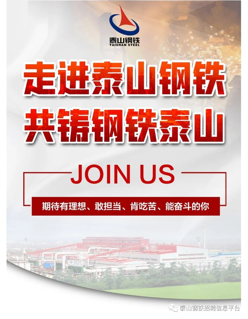 我们热切期盼,与泰山钢铁志同道合、满腔热忱、脚踏实地、拼搏进取的你的到来!让我们手握手、肩并肩,在这个伟大时代,在这方创新创业的沃土,为理想奋斗,为事业拼搏,为社会奉献,不断成长、绽放光芒!